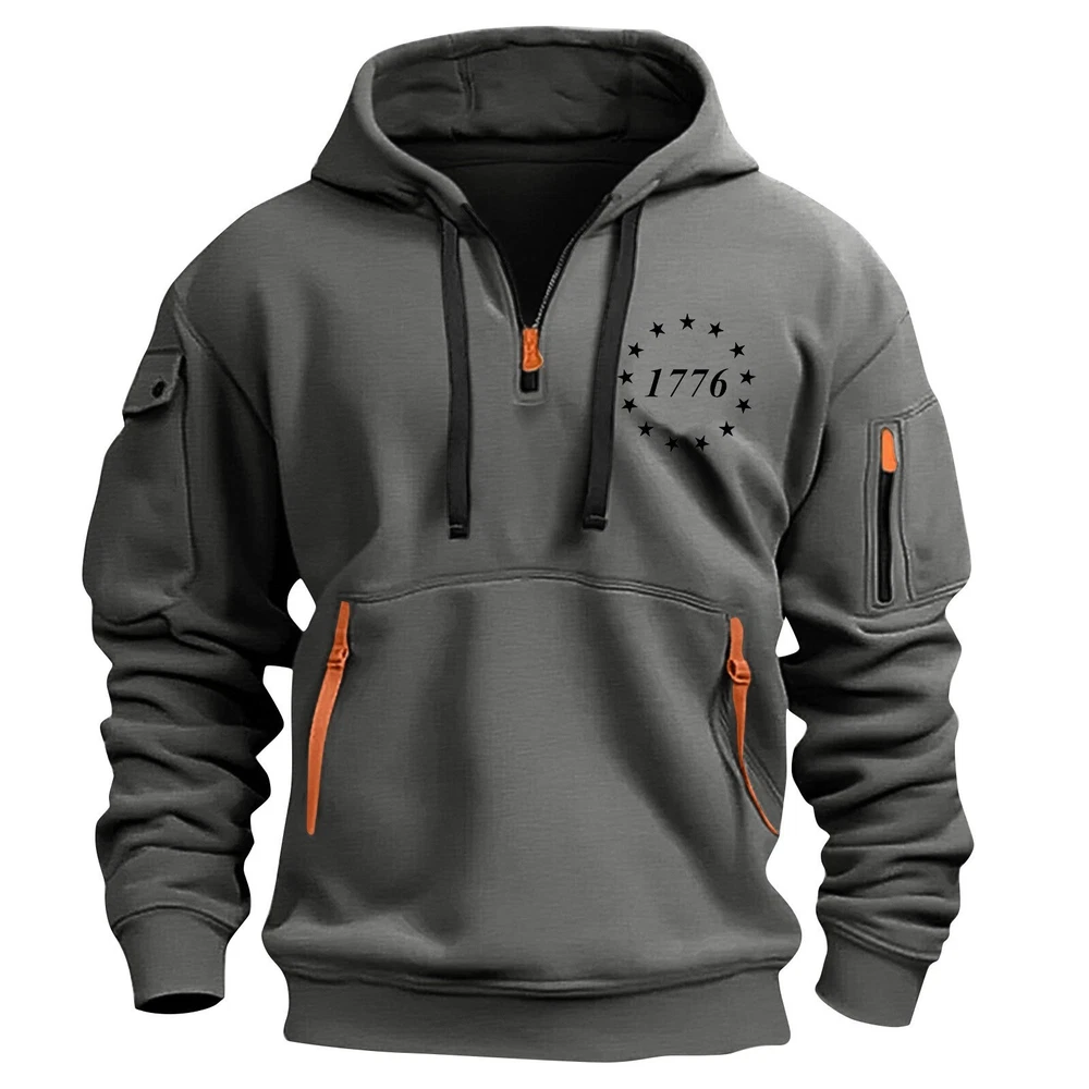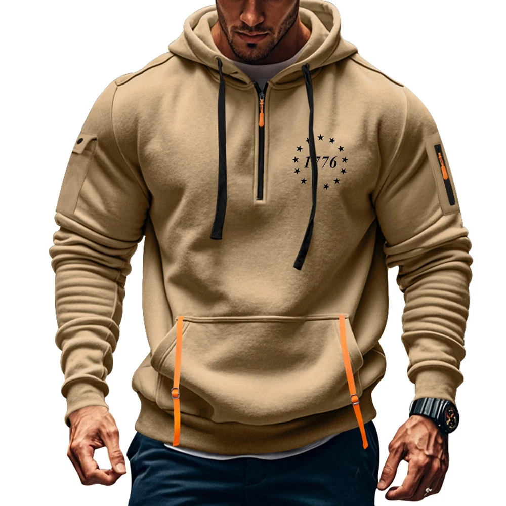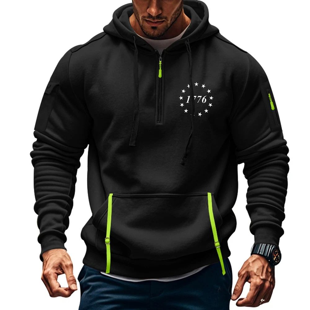 Hoodies for Men 1/4 Zip Up Pullover Tactical Sweatshirt Hoodie Arm Pockets