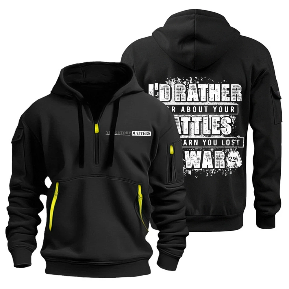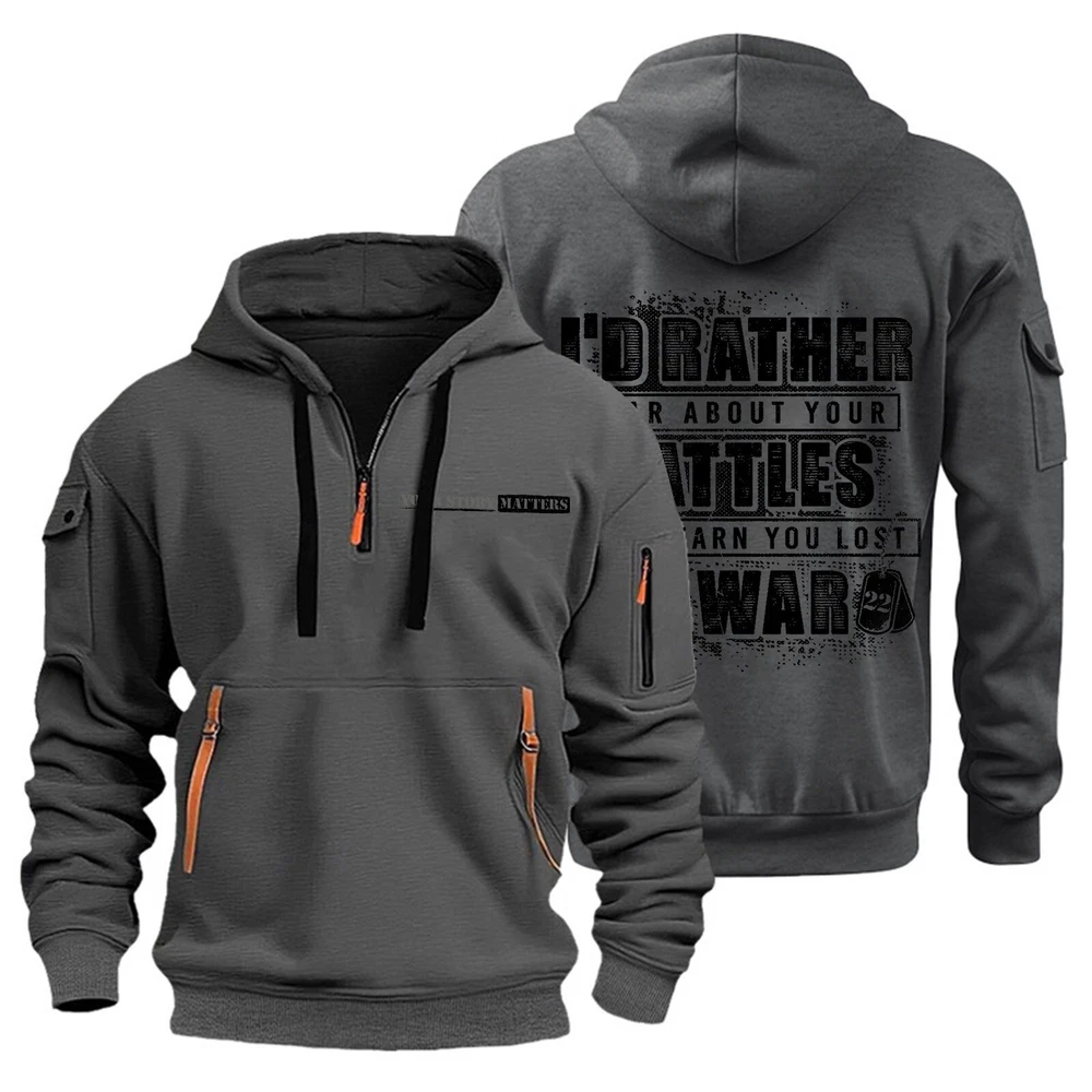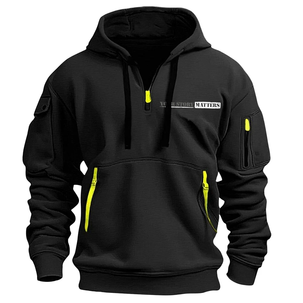 Hoodies for Men Quarter Zip Pullover Tactical Sweatshirt Hoodie With Arm Pockets