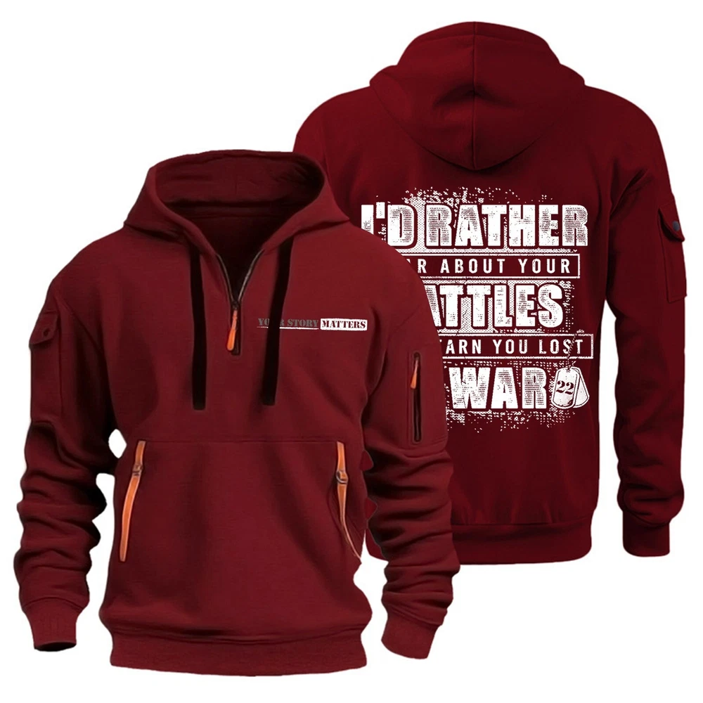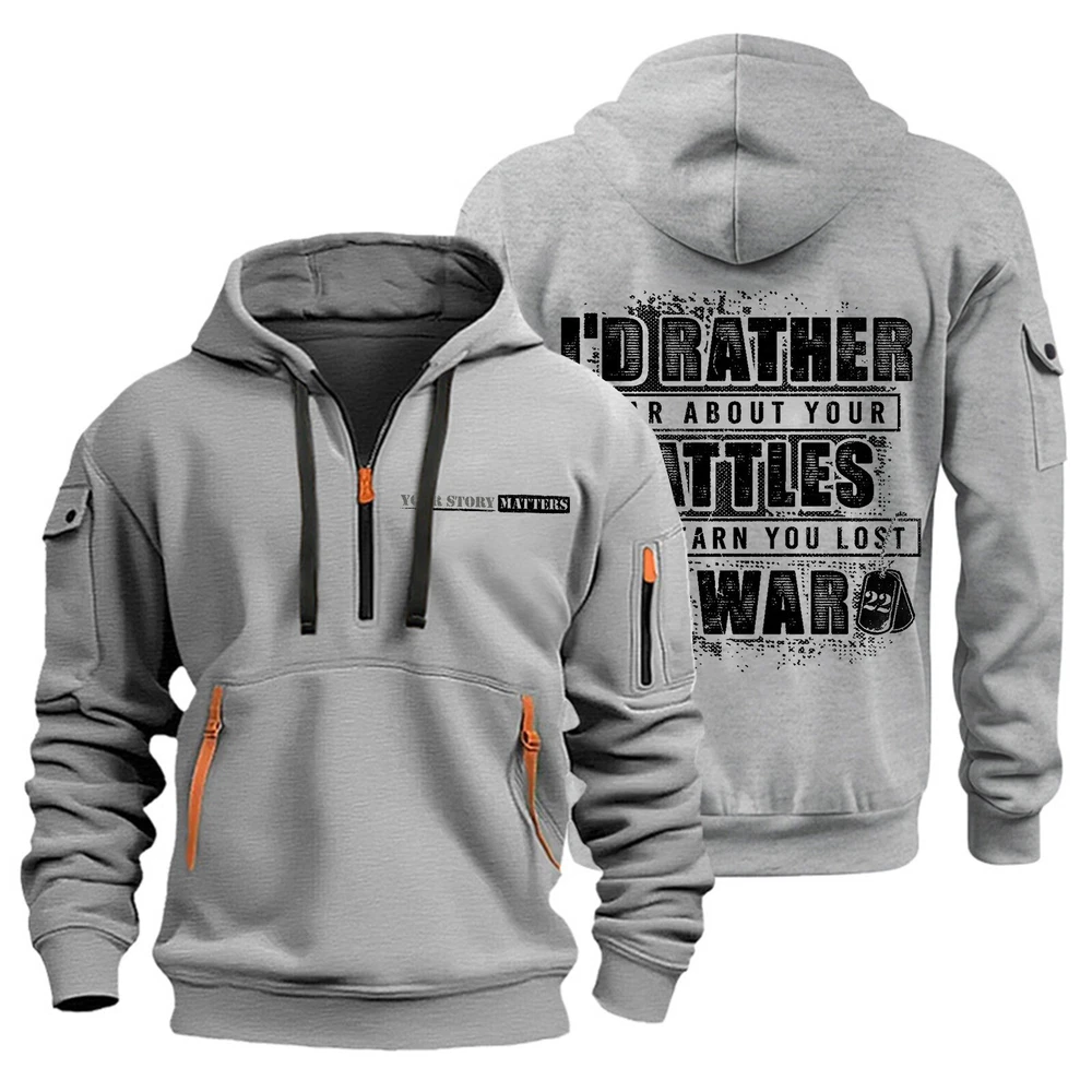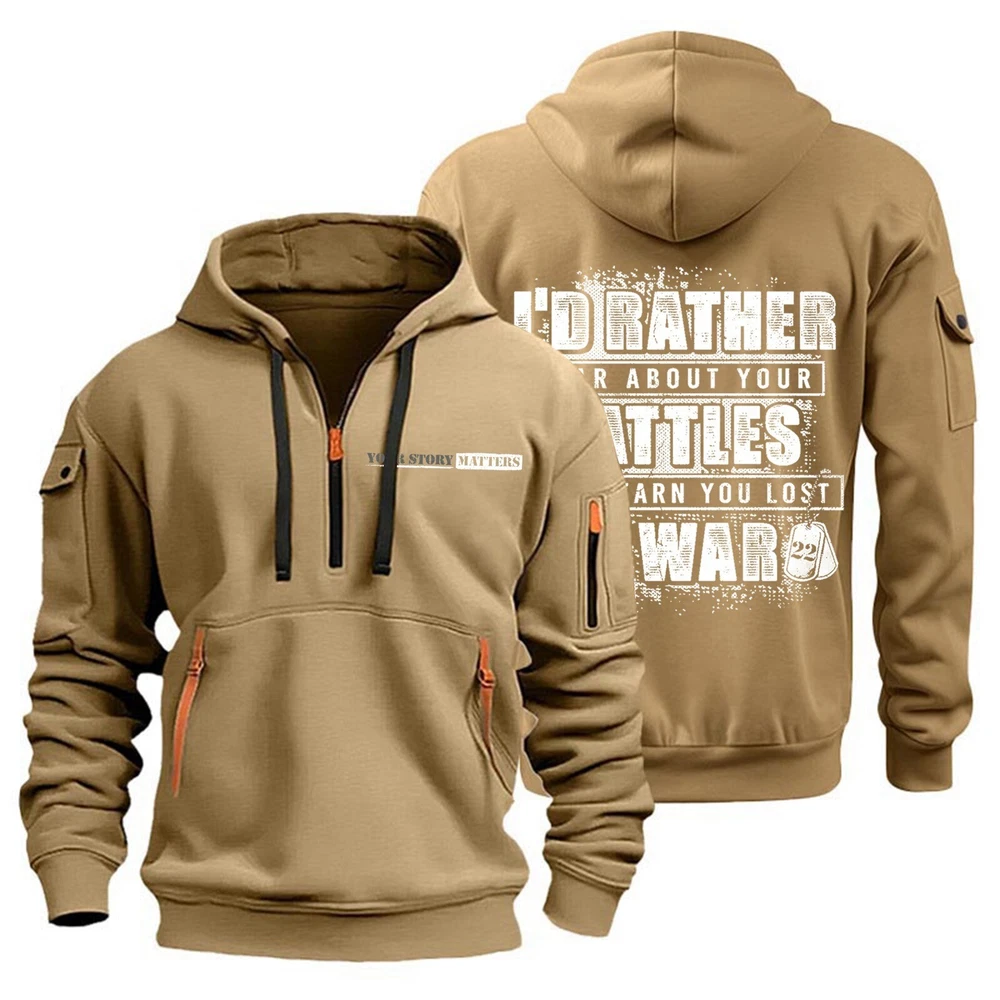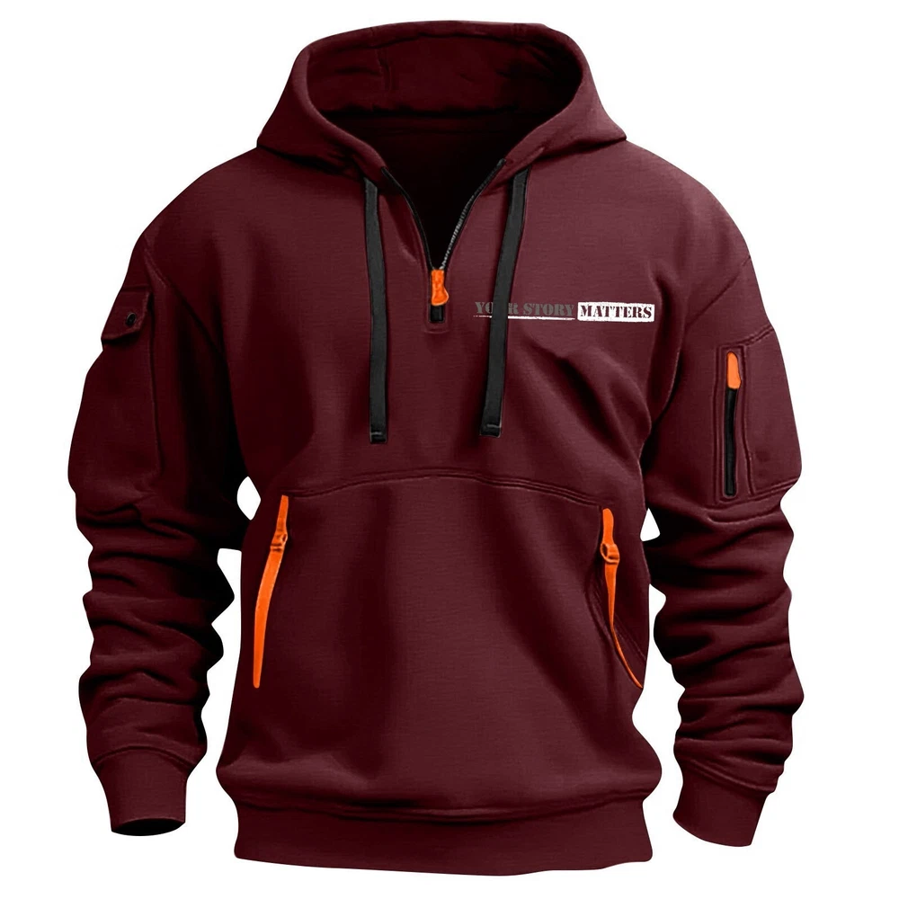 Hoodies for Men Quarter Zip Pullover Tactical Sweatshirt Hoodie With Arm Pockets
