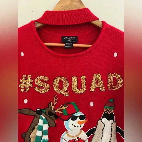 Hooked Up by IOT Junior’s Christmas Squad Goals Keyhole Pullover Sweater Size S
