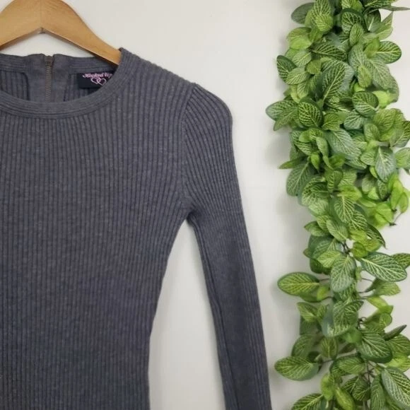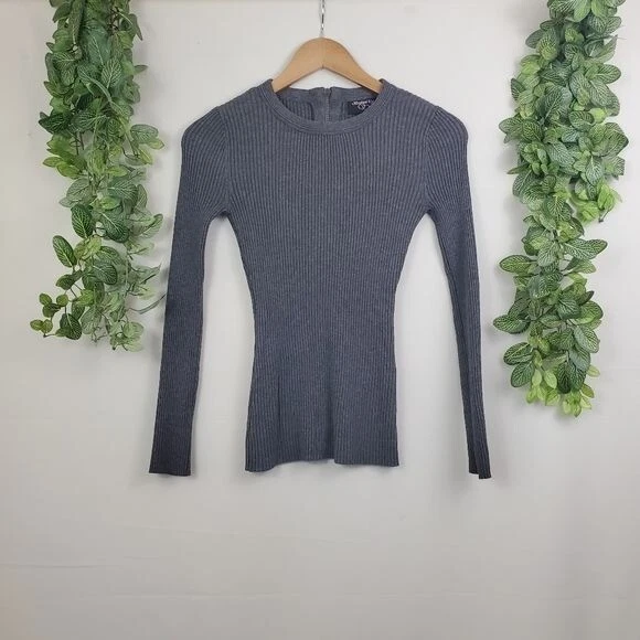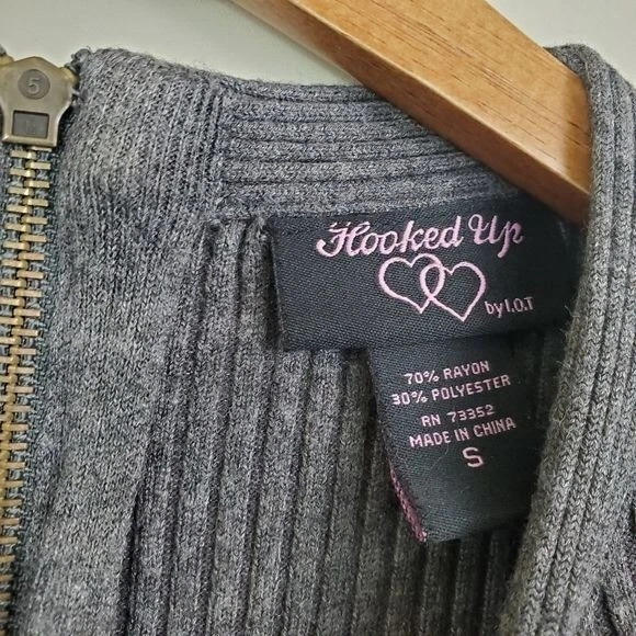 Hooked Up Long sleeved sweater top Ribbed Stretch Form fitting 70% rayon, 30% polyester Zip closure on back Size small Approximate measurements Bust 13" Length 22.5" Sleeve 23" Zipper 6" casual sexy sophisticated elegant classy classic academia aesthetic collegiate professional vixen goth cottagecore whimsygoth goth grunge punk vamp preppy travel minimal minimalist neutral