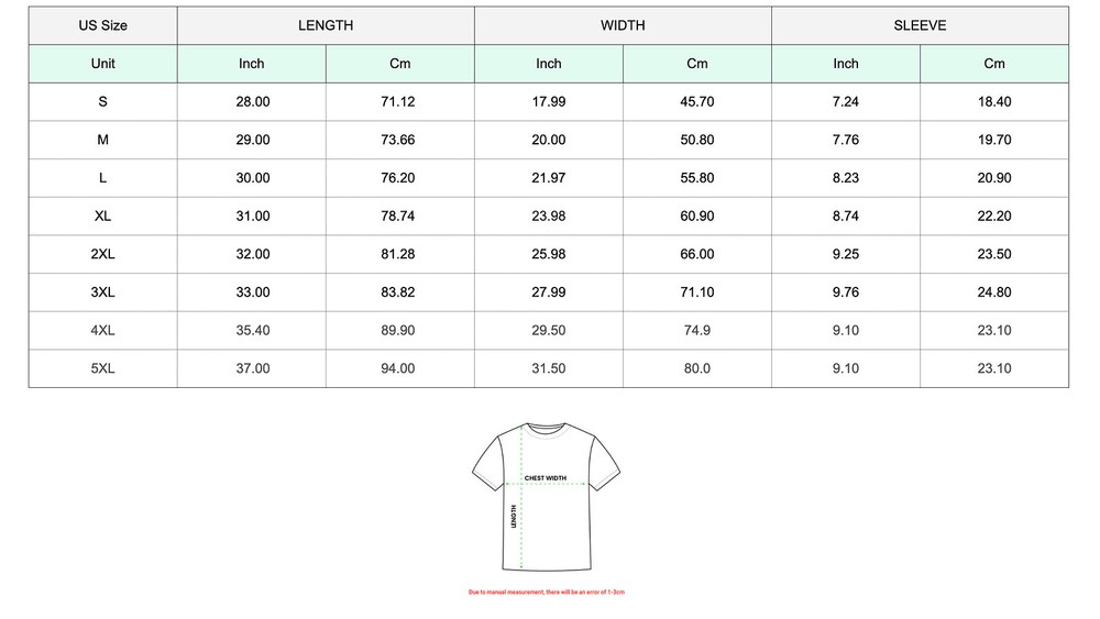 WELCOME TO MY STORE DESCRIPTION This heavy cotton tee has the classic cotton look and feel. Casual elegance will make it an instant favorite in everyone's wardrobe. FEATURES Unisex Heavy Cotton Tee (5000) Classic fit 100% Cotton (fibre content may vary for different colors) Light fabric (5.3 oz/yd² (180 g/m²)) Tear away label Runs true to size Shipping Information LOCAL SHIPPING (printed in US) USA - Shipping up to 3 - 7 business days INTERNATIONAL SHIPPING (printed in Germany or Czech Republic) Germany or Czech Republic - Shipping up to 3 - 7 business days Europe - Shipping up to 7 - 14 business days Other Country - Shipping up to 14 - 30 business days SIZE CHAT # S M L XL 2XL 3XL 4XL 5XL Width, in 18 20 21.97 23.98 25.99 28 30.04 31.97 Length, in 28.51 29.49 30.52 31.5 32.52 33.51 34.49 35.52 Sleeve length, in 7.52 7.76 8.23 8.75 9.26 9.77 10.24 10.75 Thanks for Shopping!