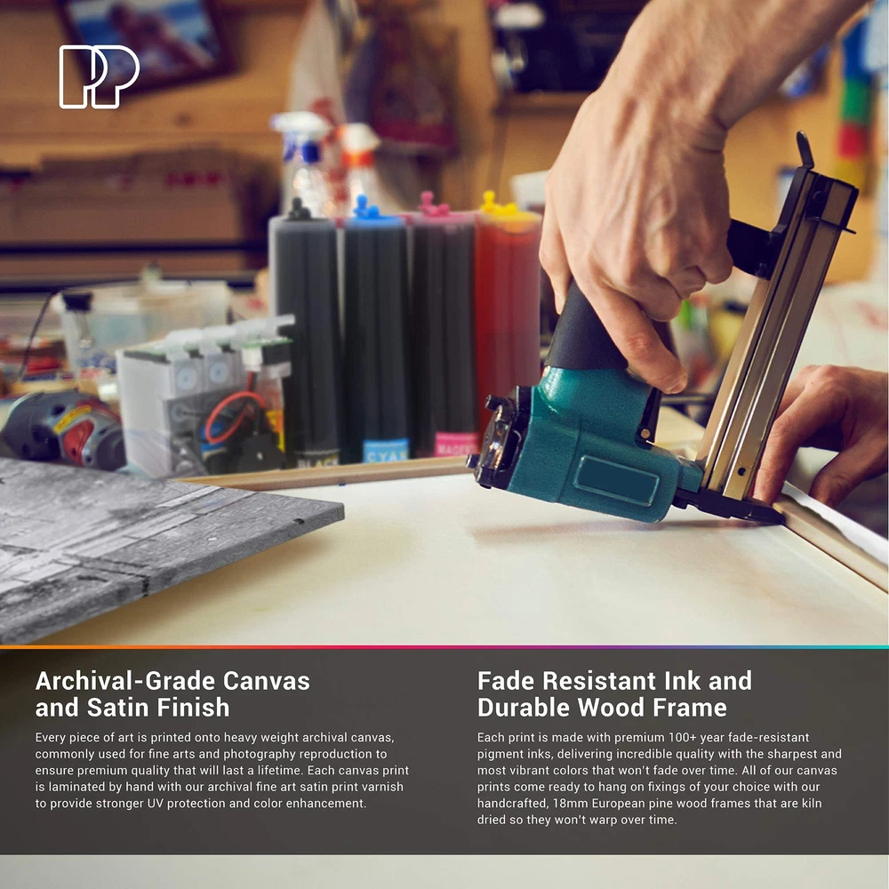 Make a statement. Set the mood. Pull your room together with wall art prints that POP Bring your walls to life with a canvas print that suits your style. Whether it’s beautiful photography, pop art, calming scenes to soothe the soul, or something different entirely, you’ll find a print that grabs your attention, and says 'pick me!’. Have a look through our ever-growing selection of ready to hang Canvas Prints—with a range of styles and sizes to choose from you’ll be sure to find something that fits your personality just right. Designs that stand out, that complement, and help you tell your story. Canvas prints that suit you. We believe that your walls shouldn’t be boring, that your home should be a space that tells a story. Let us help you transform your spaces. Features: ● Handmade using warp-free slim-but-solid 18mm kiln-dried pine framing and premium archival canvas ● Your canvas is made with fade-resistant pigment inks, allowing incredible quality, & vibrant color ● Satin print finish - giving color & depth, meaning it’ll stay brighter for longer (and won’t fade!) ● Durable pine wood frame - using warp-free slim-but-solid 18mm kiln-dried European pine framing ● Handmade with love by master framers - each frame features staples and is ready to hang Framed & Ready to Hang - Hand Made For You & Framed On Warp Free 18mm Kiln Dried Solid Pine Frames. Beautiful Canvas Art - HP Vivera UV Resistant Pigment Inks Ensuring You Get, Vibrant, Accurate Colours to brighten up your home and walls! Canvas Print Supplied Ready To Hang On a Nail In Your Wall - Manufactured & Packed in Secure Cardboard Packaging A Product - Heavyweight Quality Canvas made with Archival Materials and Vivid Colours