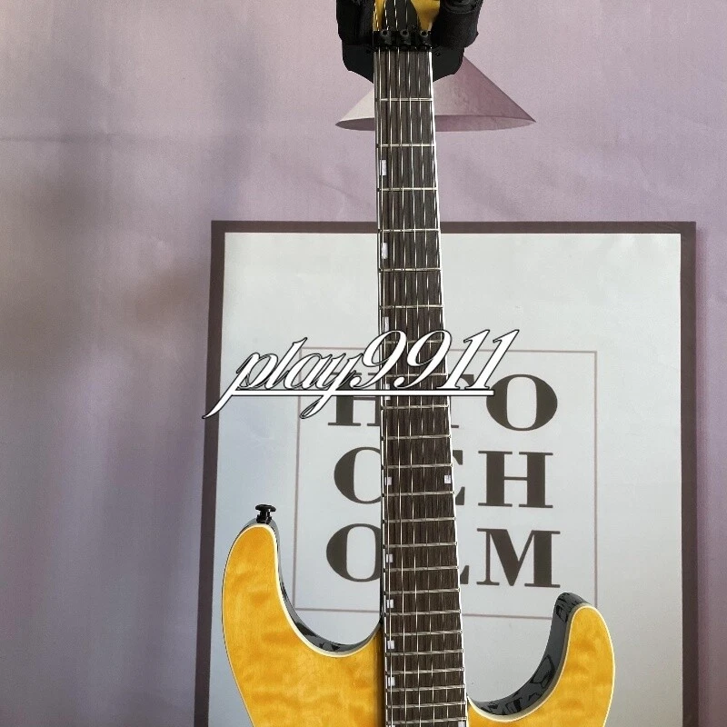 H ot Sale Yellow ST Solid Electric Guitar Black Double Tremolo Bridge Factory ITEM SPECIFICS Pickups: 2 EMGHumbucker Hardware: Black Body Type: Solid Orientation: Right Handed Number of frets: 22 Inlays: Same as pictures show Number of strings: 6 Strings Country of origin: Ma de In China Color: Yellow ABOUT PICTURES All pictures are taken in kind. Due to different ambient light, the actual color may be slightly different from the picture. ABOUT PRODUCTS Each guitar is individually handcrafted There is a 30-35 working day build period for the custom guitar ABOUT SHIPPING When items are stored in the United States, we will use UPS or Fedex to arrive at their destination in 1-2 weeks. For international transportation, we send them via EMS or UPS and it will take about 2-5 weeks to arrive.(All have tracking numbers) ABOUT RETURNS We accept returns up to 30 days after delivery. For rare incidents of abnormal situations that occur in our products or transportation, we will be happy to cooperate with you to find a fair solution. NOT E Please feel free to message us if you have any questions and we will get back to you as soon as possible.
