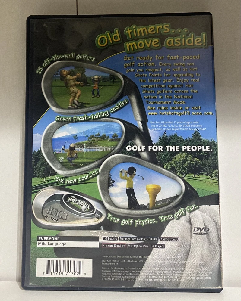 Experience the thrill of a wacky golf game with Hot Shots Golf 3 for Sony PlayStation 2. This video game features a hilarious cast of larger-than-life characters, each with distinct personalities and unique moves. Tested and ready for play, this game is sure to provide hours of entertainment for gamers of all ages. Released in 2003, Hot Shots Golf 3 is part of the popular Hot Shots Golf series. This sports game is published by Sony Computer Entertainment and rated E for Everyone. With its fun gameplay and colorful graphics, it's a must-have addition to any gamer's collection. 😊😊 PLEASE SEE OTHER ITEMS, IM LISTING THIS FROM A VIDEO GAME LOT (PS2,NINTENDO 3DS, N64 LOT - I ALSO HAVE LISTED NERF PISTOLS, RIFLES, ACCESSORIES, ETC - NERF RIVALS WHITE/RED, ACCUSTRIKE, TERASCOUT, RAMPAGE, ZOMBIE ETC - FREE SHIPPING ⭐️⭐️⭐️⭐️ PROCESSING TIME: 3 DAYS ITEM: - HOT SHOTS GOLF 3 - NO MANUAL - DESCRIPTION: - NO MANUAL CASES OF PREOWNED RETRO/VINTAGE GAMES WILL SHOW SIGN OF SHELF WEAR AND USE - TESTED - DISC IS 6.2 - 6.8/10 THANKS MUCH FOR YOUR SUPPORT MY DEAR CUSTOMER ⭐️🙏