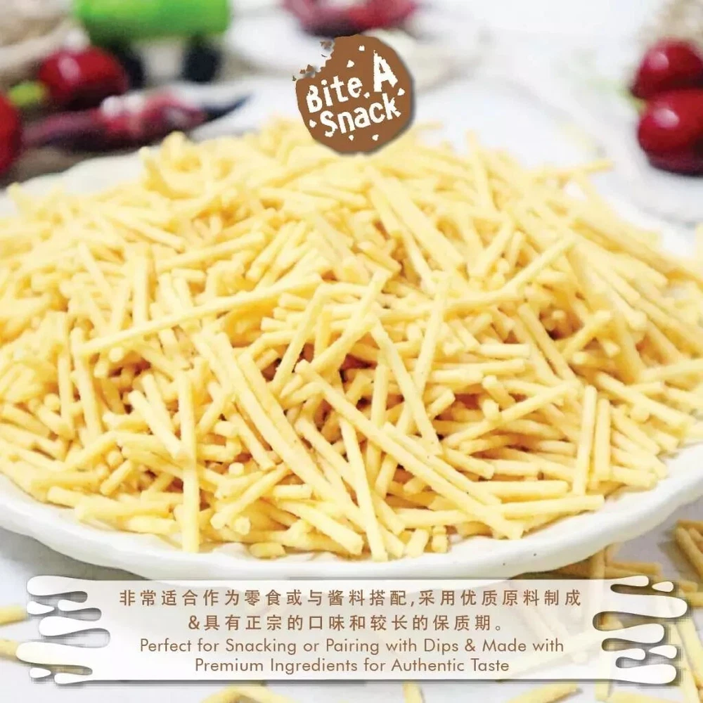 Description Crunchy, savory, and bursting with shrimp flavor, our Janggut Udang (Shrimp Flavored Sticks) is the perfect snack for seafood lovers. These thin, crispy sticks are made from premium wheat flour, shrimp seasoning, and corn starch, offering an irresistible texture and umami-packed taste. Whether enjoyed as a snack on its own or paired with dips, this light and flavorful treat is sure to satisfy your cravings. Ingredients Wheat Flour, Corn Starch, Palm Oil, Shrimp Seasoning, Sugar, Iodized Salt, Raising Agents Allergen Information This product contains no allergens Packaging 200g±/pack Shelf Life Best consumed within 6 months from the date of production. Nutrition Facts (Per 30g Serving): Total Fat :7g, Saturated Fat : 3g, Trans Fat : 0g, Cholesterol : 0mg, Protein: 2g, Total Carbohydrates 总碳水: 19g, Dietary Fiber: <1g, Sugar: 1g, Sodium: 330mg Highlights Authentic Korean Sweet and Spicy Tteokbokki Flavor Light and Crispy Texture with a Crunch in Every Bite Perfect Snack for K-Drama Lovers and Korean Food Fans Long Shelf Life for Anytime Enjoyment