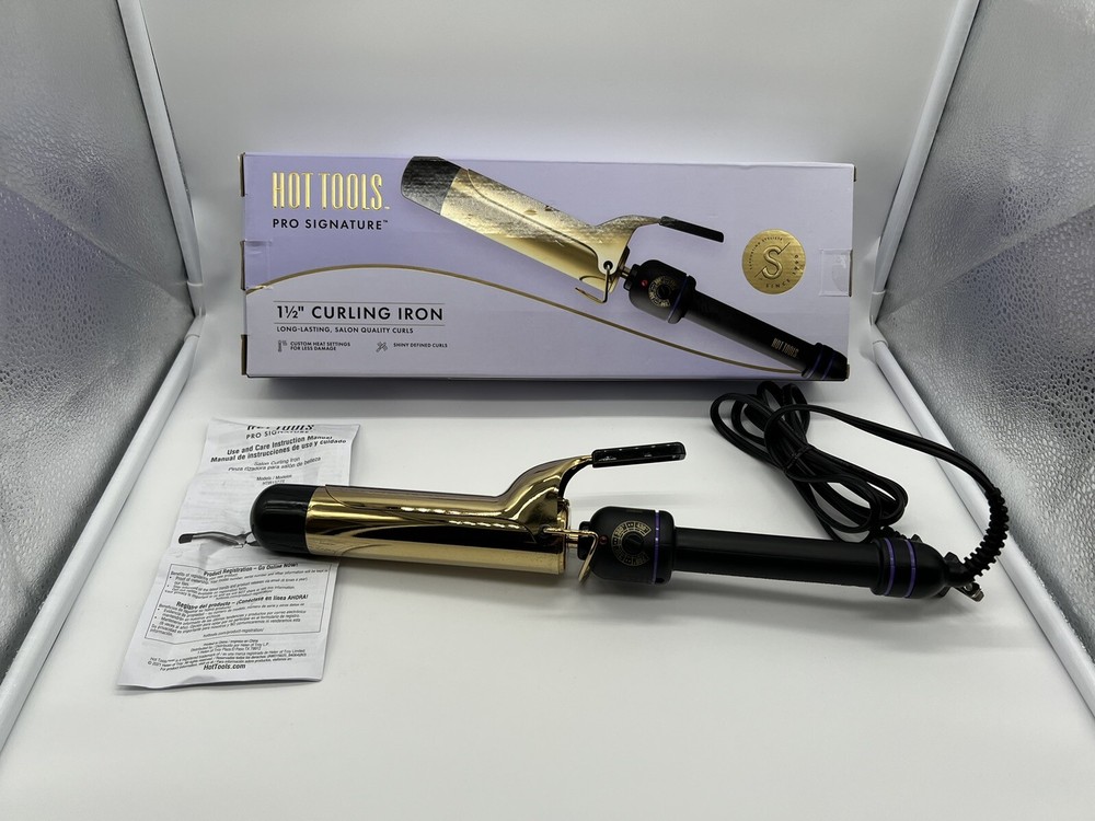 Hot Tools Pro Signature 24K Gold Curling Iron/Wand | Long-Lasting, 1 1/2 ". Used, tested it works. Item: I10