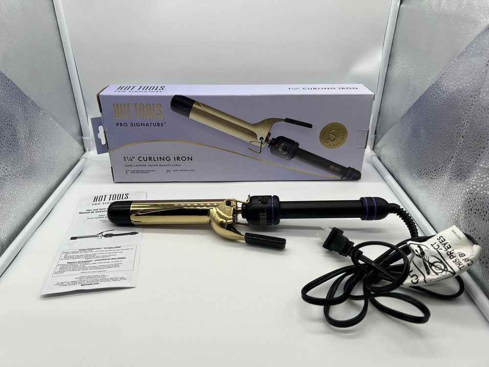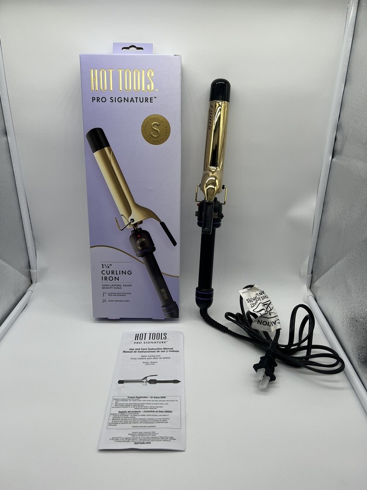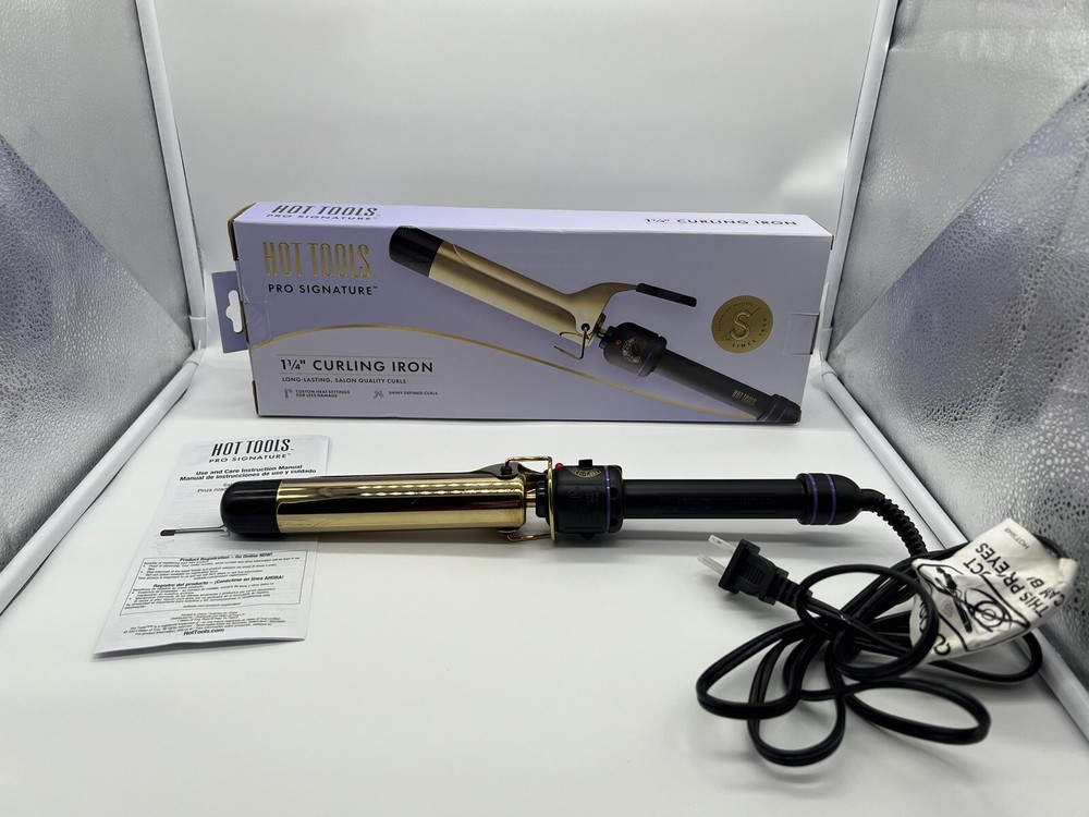 Hot Tools Pro Signature Series Gold 1-1/4" Curling Iron Wand (HTIR1576). Used, tested still in good condition. Item: O1