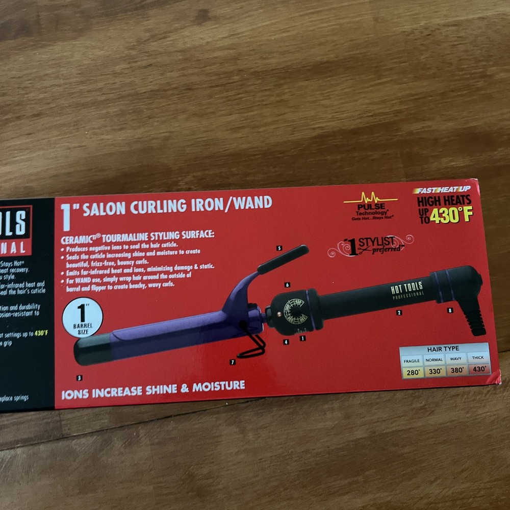 The Hot Tools Professional 1'' Salon Curling Iron Wand is a high-quality hair tool designed for all hair types. With a maximum temperature of 430 °F and ceramic heating plate material, this curling iron provides efficient and salon-quality styling. Featuring adjustable heat settings, ionic technology, and a cool tip, it offers a wide range of styling options while ensuring safe and comfortable use. The sleek purple design, indicator light, and swivel cord make it both functional and stylish for professional or at-home use. Made by the reputable brand Hot Tools, this curling iron is a reliable choice for achieving beautiful curls.