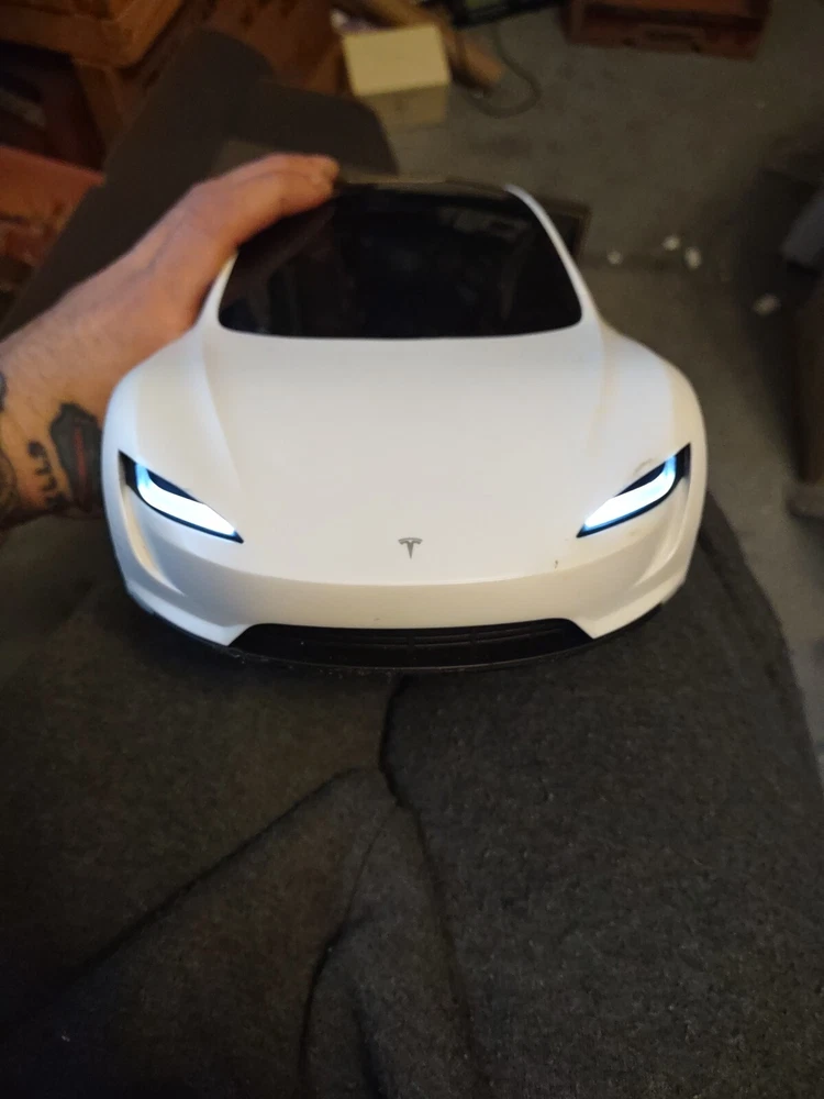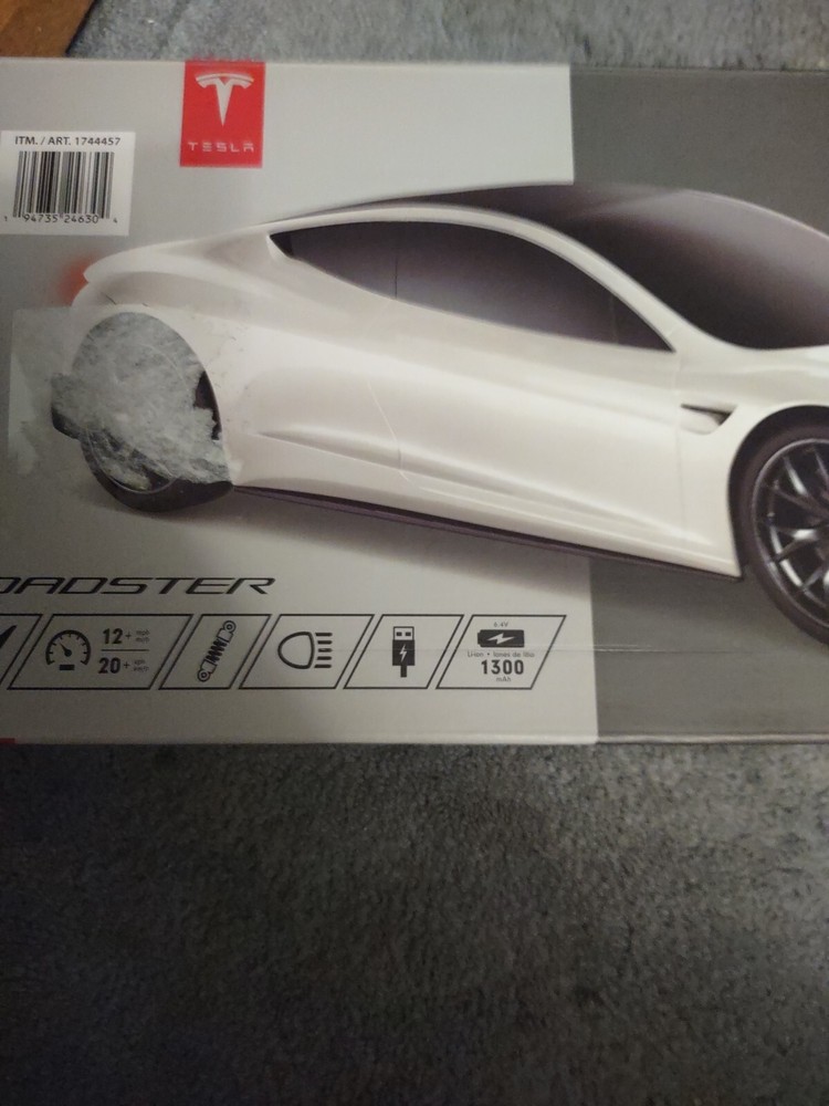 This Hot Wheels RC Tesla Roadster is so much fun! The sleek white design looks just like the real thing, and it handles smoothly with the remote. My kid loves racing it around the driveway—durable, fast, and easy to control. The open-box condition was practically new, and it arrived quickly. Perfect gift for any young car enthusiast!