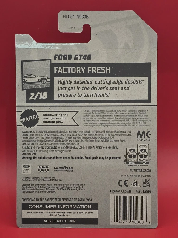 This Hot Wheels diecast car is a must-have for collectors and car enthusiasts alike. With a 1:64 scale model of the Ford GT40, this car is a part of the Hot Wheels Factory Fresh series and is a limited edition 2/10 release. The car features intricate details and a sleek design, perfect for display or play. The Hot Wheels brand is known for their high-quality diecast cars and trucks, and this model is no exception. With its BBHTC51 model number and Ford GT40 designation, it is sure to impress. Add this car to your collection today and enjoy the attention to detail that Hot Wheels is known for.