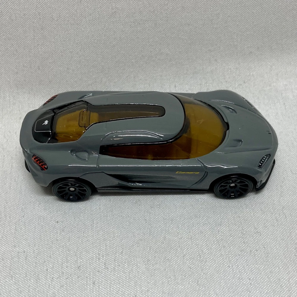 For all the car enthusiasts out there, this Hot Wheels die-cast model car is a must-have addition to your collection. The car is a Koenigsegg Gemera and comes in a striking gray color. The 1:64 scale replica is made from high-quality diecast material and has been crafted with great attention to detail. This Hot Wheels car is perfect for collectors of all ages and is recommended for children above the age of 3 and is a great way to encourage their love for cars. The model car is a loose piece Hot Wheels product, manufactured in Malaysia. Add this unique piece to your collection today! Same Day Shipping and packaged with Care. Thank you for shopping TKO Specialties