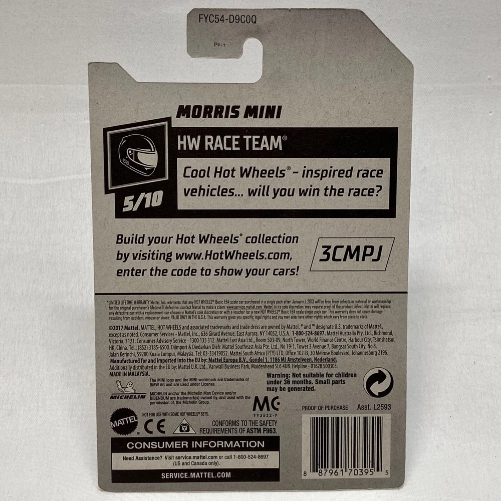 This Hot Wheels mini morris is a must-have for any collector or fan of the HW Race Team series. With a vibrant blue color and 1:64 scale, this Morris Mini model is a great addition to any collection. It features diecast material and is recommended for ages 3 and up. The car is part of the Hot Wheels Race Team series and is model number 242/250. It is not customized and was manufactured in Malaysia in 2017. The Morris Mini is a perfect gift for boys and girls who love cars and racing. Add this Hot Wheels model to your collection today! Same Day Shipping and packaged with Care. Thank you for shopping TKO Specialties