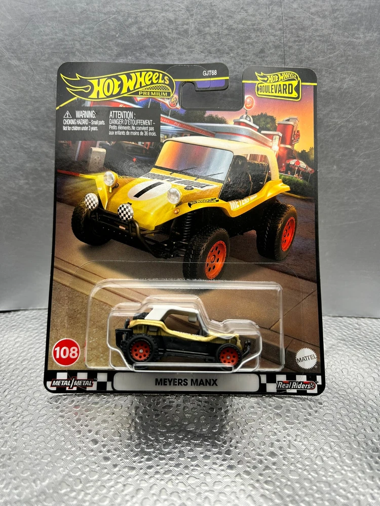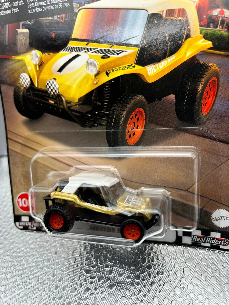 For all the car enthusiasts out there, this limited edition Hot Wheels Premium diecast model of the Meyers Manx is a must-have addition to your collection. With its stunning gold and white color scheme, this 1:64 scale model is a perfect replica of the iconic car from the Real Riders series. This model is recommended for children aged 3 and above, as well as collectors who are looking for a special edition piece. It is a perfect gift for both boys and girls, and is sure to be a hit with anyone who loves cars. The Meyers Manx model is manufactured in Thailand and is part of the Boulevard series by Hot Wheels. Thanks for your time!