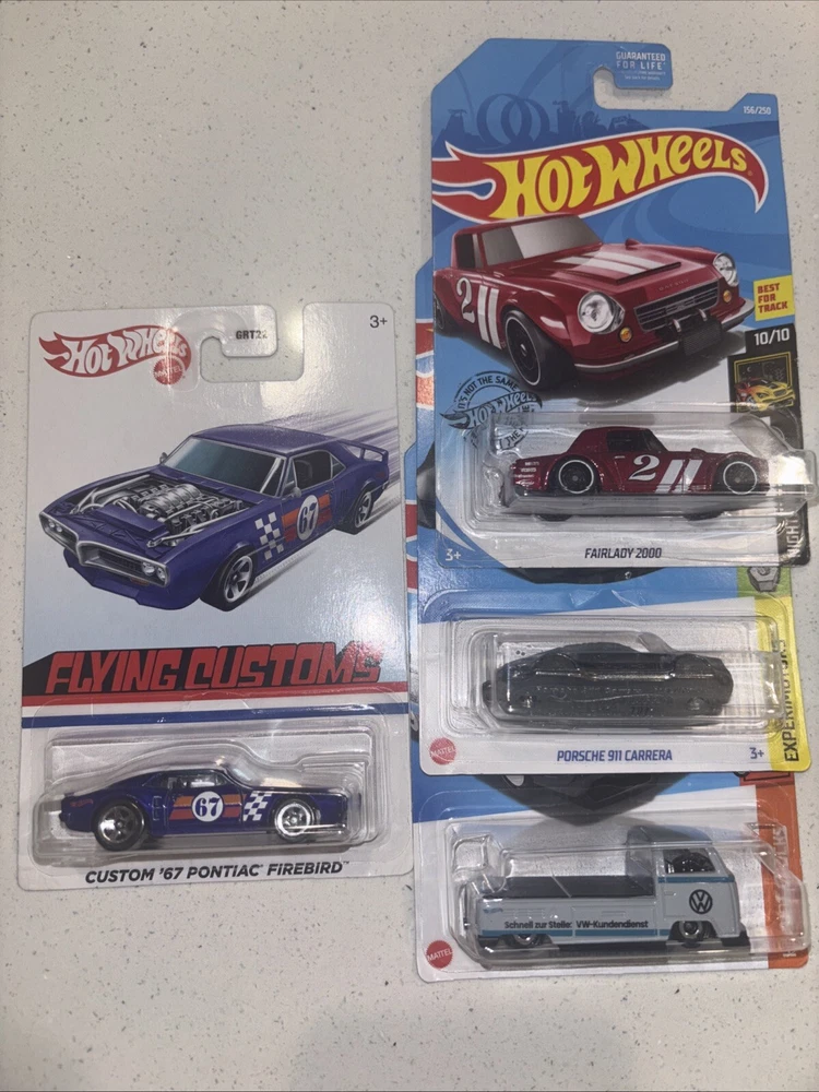 Hot Wheels random lot of 4 Super Cool Cars.. Flying Custom Firebird, Fairlady >