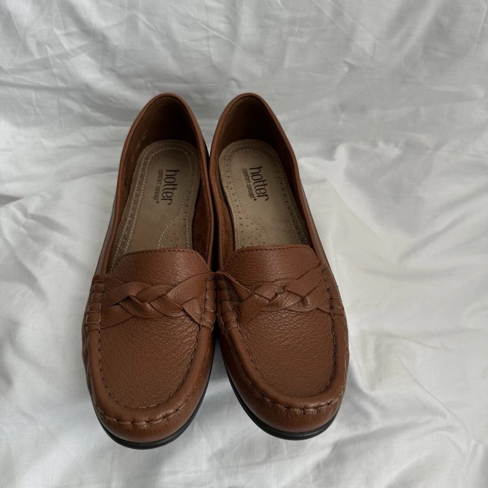 The Hotter Comfort Concept Brown Loafer Women's Size 9 is a stylish and comfortable pair of flat shoes designed for women. Made with leather and featuring a medium width, these loafers are perfect for everyday wear. With a UK size of 7 and a corresponding US size of 9, these shoes are crafted in the United Kingdom, ensuring quality and durability. The brown color and loafers & moccasins style make them versatile enough to be worn with a variety of outfits.