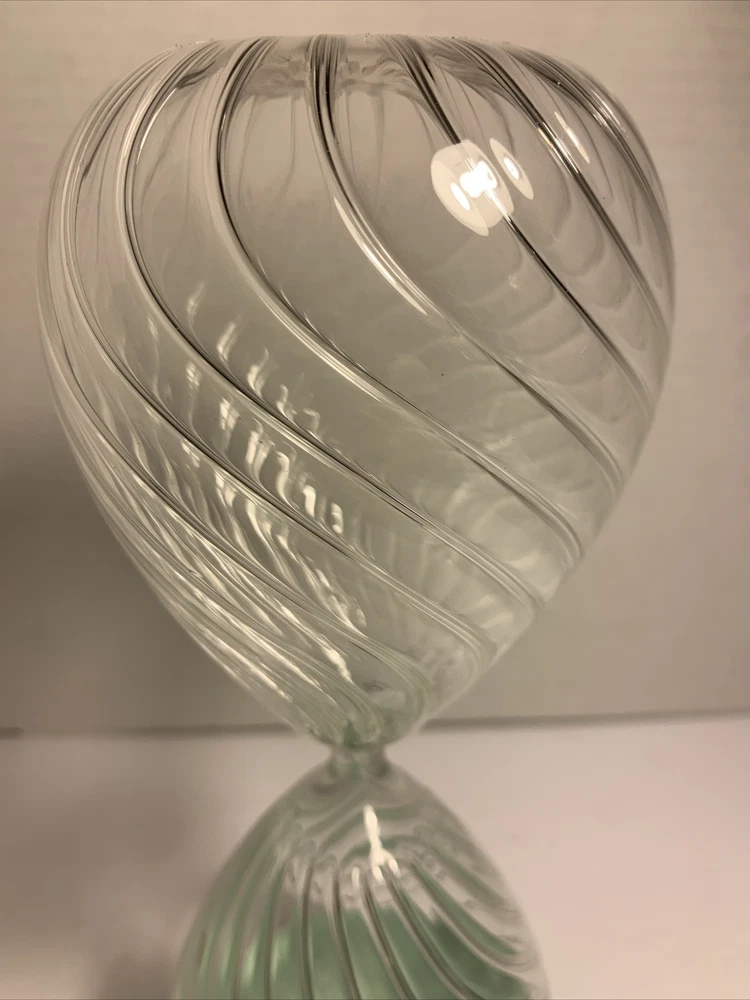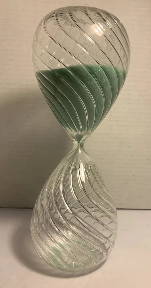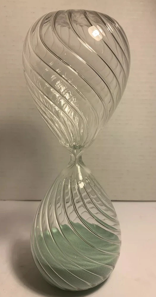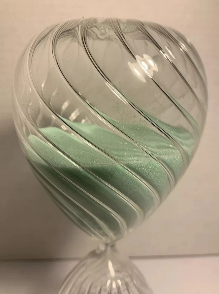 Clear Swirl Plastic, Green Sand Hour Glass, 10" X 4” Inches. New excellent condition. Size is 10” x 4” inches. Please pay close attention to see all the pictures for quality and details. ( NON SMOKING HOUSEHOLD ) Will ship item using my choice of USPS, FedEx, or UPS. Which ever shipper covers the cost of the labeled shipping. ( Unless Requested Otherwise. )