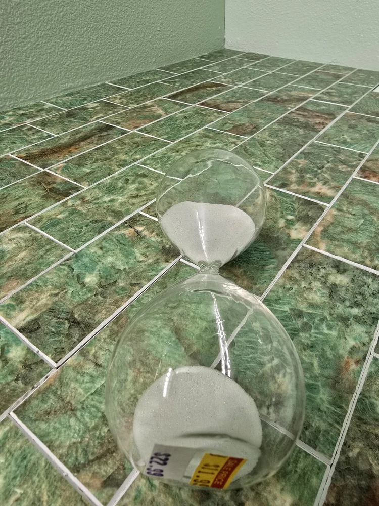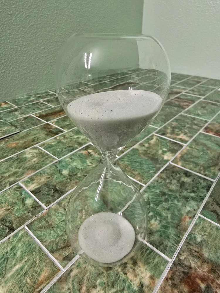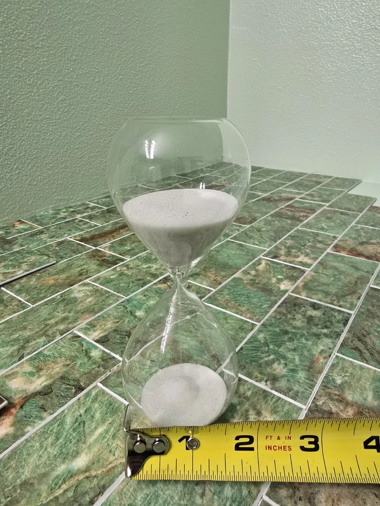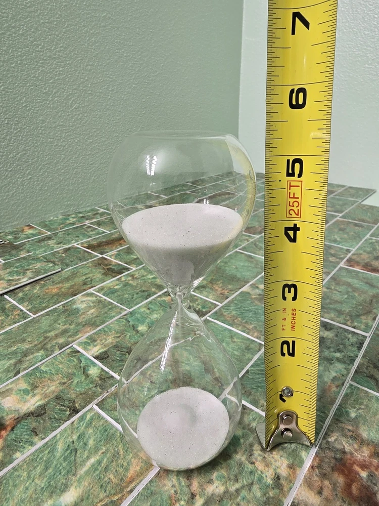 New opened box Glass hourglass with white sand Thanks for looking! Check out my other listings and bundle for cheaper shipping!