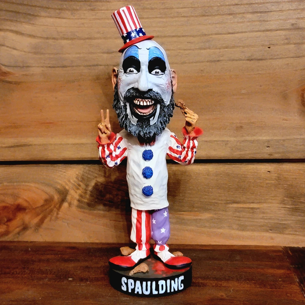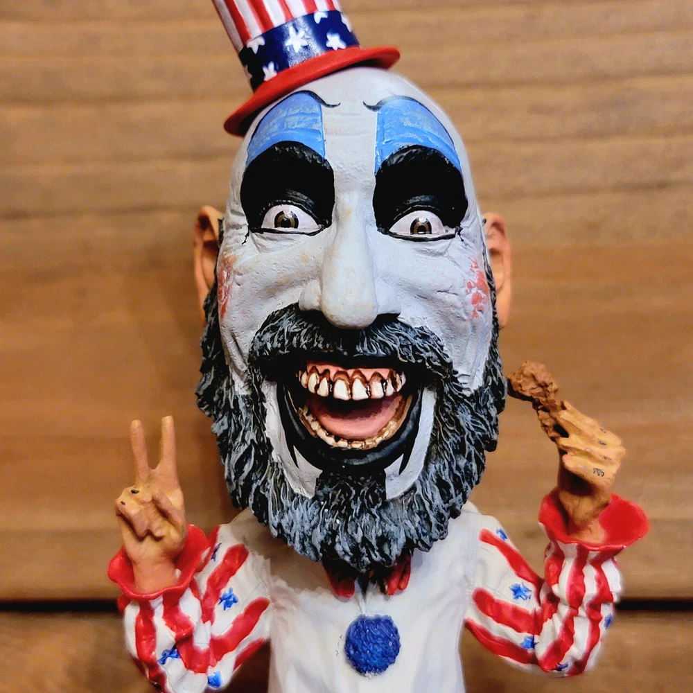 House of 1000 Corpses Captain Spaulding Head Knocker House of 1000 Corpses Captain Spaulding Head Knocker **Read the full description before purchase.** This listing contains multiple of the same item. You will receive the listed figure w/ accessories, brand new, unopened and sealed in its original packaging. The pictures serve as an example only. Condition of the item packaging is not guaranteed to be mint. If you are an "In-Box Collector" message me before purchase to receive the best one available. You can also leave a note during purchase. All items are securely packaged and shipped regardless of condition. **If the item is damaged by the postal service, please visit my About Us page for Return Instructions. All Action Figures and Funko Pops, sold by MC Collectible, are "IN HAND" and acquired from the Brand Manufacturer, GUARANTEED to be Genuine/Authentic. **Shipping automatically combines when multiple items are added to cart. Some big items may not qualify for combined shipping** * Smoke Free Environment* This addition to NECA's popular Head Knockers line brings you Captain Spaulding from Rob Zombie's movie House of 1000 Corpses ! Dressed as a murderous clown, he's cast in resin and then hand painted for incredible detail. Over 8-inches tall with bobbling head and removable hat. Comes in collectible matte packaging with spot gloss finish. For ages 17 and up. Listing and template services provided by inkFrog