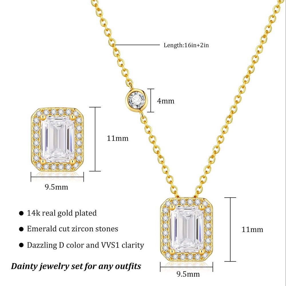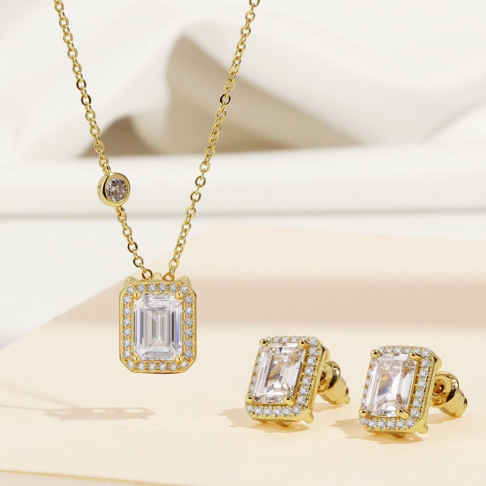 Howoo Sparkly Halo Cubic Zirconia Necklace and Stud Earrings for Women Jewelry Set Product Details Color: Gold Rectangle Emerald Cut Classics Brand: Howoo MPN: Does not apply UPC: Does not apply EAN: Does not apply Department : womens Date First Available : September 13, 2023 Brand, Seller, or Collection Name: Howoo Metal: Copper Material: Copper Gem Type: Cubic Zirconia Chain: Lobster Clasp Clasp: Lobster Clasp