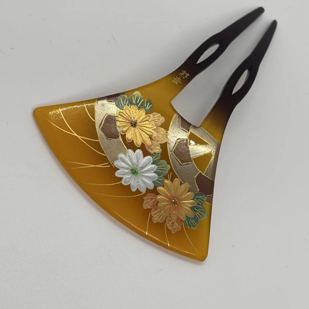 Hua Sho Wedding Kanzashi Tortoiseshell Gold Lacquer Chrysanthemum Hairpin Key Features **Kanzashi Hairpin with Chrysanthemum Design** - **Brand**: Kōdo - **Product Type**: Kanzashi Hairpin - **Model**: Chrysanthemum Pattern **Features**: - **Design**: Beautiful chrysanthemum motif and Genji car design, elegantly depicted with gold maki-e. - **Material**: High-quality tortoiseshell-like finish, providing a luxurious feel. - **Color**: Gold and natural tones, reflecting light beautifully. - **Size**: Well-proportioned for ease of use. - **Symbolism**: Represents longevity, good health, and nobility; suitable for various occasions. **Condition**: - This item is in excellent condition, with no visible scratches or stains. **Usage**: - Perfect for weddings, parties, or everyday wear with kimono or yukata. This exquisite kanzashi is a timeless piece that complements a wide range of ages and styles. Specifications Brand No Brand Country Japan Product Description Item Descriptions Thank you for taking a look at the item we are listing. This item is a used item. If you have any questions or concerns about this item please feel free to contact us. We also have many other items on ebay besides this item. It would be great if you could take a look at that as well. If you do not see the item you want in our listings please contact us and we will do our best to find it for you. We will do our best to find the item you want. Please make sure you understand all of our policies including our sales policy before you buy. We are selling this item in accordance with ebay's policies. Please be sure to review ebay's policies before making a purchase Handling Time Handling Time : 10 business days Due to the ongoing global holiday season there is a significant increase in the handling of packages by shipping companies. Therefore it is possible that there may be delays in pickup shipping and during transit. Please make your purchase with an understanding of these potential delays. In the event of any delays rest assured that we will investigate and take responsibility. Please buy with confidence. Message For You Thanks for taking a look at my products. We hope you will consider them. I am listing on ebay with my company. I am listing my products on ebay in Japan. I have only slight feedback. It may be making you uncomfortable. But don't worry. I will provide courteous and responsive service. We also have a variety of other products for sale. We hope you will take a look at those as well. If you are looking for a particular item that is not in my listing please do not hesitate to contact me. I will look it for you. ※All of the products we sell are cleaned and disinfected during inspection. We hope you will consider purchasing our products. All of the products we sell are cleaned and disinfected during inspection. Please be sure to review and understand the policies listed below before making a purchase. If you have any questions please contact us. There is an inquiry button at the top. Notice Becausethe international air shipping forbid to ship liquidpowder and batteries If you purchased goods containing such items we will not be putting them packing. Please understand them before purchasing the product. INTERNATIONAL BUYERS Import duties taxes and fees are not included in the price or shipping charges of the items you purchase. You are responsible for payment of any import duties taxes and fees. If you are unsure of the price of import duties taxes and fees please contact your country's customs office for confirmation. If you owe import duties taxes or fees they will be charged to you by the shipping company. When we ship goods we do not undervalue the declared value below the value of the goods. We also do not ship as gifts. These are strictly prohibited by eBay policy. Please refer to the following for more information. https://www.ebay.com/help/buying/shipping-delivery/changing-delivery-address-method/international-purchases-shipping?id=4057 There are also other ebay policies that buyers should review. Please be sure to abide by them before making a purchase. FEEDBACK POLICY We provide timely customer support to all purchasers. We will respond to your inquiry within 24 hours. Our working hours are from 10:00 to 20:00 Japan time. Once you have received your item please make feedback for us as this will let us know that you have received your item. In case of damage please be sure to take pictures of the following items and send them to us 1. Photograph of the entire item 2. Photograph of the damaged part 3. A photo of the condition of the cushioning material in the package 4. A photo of the condition of the cardboard box it arrived in SHIPPING POLICY Shipping methods are Japan Post FedEx and DHL. If you select "Economy Shipping from outside US" or "Economy International Shipping" at the time of purchase your order will basically be shipped by Japan Post. All shipments are tracked. Please buy with confidence. Shipping by Fedex or DHL is the fastest shipping method available. This can be changed for an additional charge. Please select "Standard Shipping from Outside the U.S." or "International Standard Shipping" if you prefer. Shipments are usually made within 5-10 business days. The earliest we can ship is the day after the ship date and in some areas it may take several days but we try to get your order to you as soon as possible. A shipment control number or tracking number will be sent to the customer as soon as it is issued. We strictly adhere to package handling times. Estimated arrival time in Economy Asia: 2 to 3 weeks Oceania: 2 weeks North America: 2-3 weeks Middle East: 2-3 weeks Europe: 2-3 weeks *It may take longer than the estimated arrival date due to carrier and traffic conditions in each region. Due to global disruptions we may not be able to ship to some areas. Subject to change on a daily basis. If we find after purchase that we are unable to ship we will issue a full refund. PAYMENT POLICY