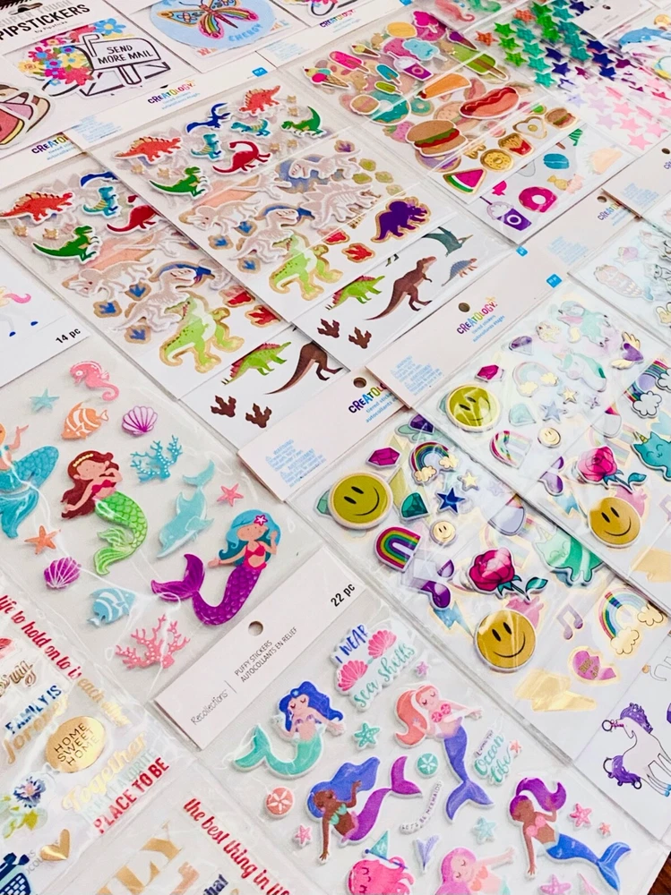 HUGE Mixed Sticker Random Lot / Themes | The Ultimate Kit | Qty. 2098+ Stickers Quality Sticker Brands Only! Vibrant Assortment of Puffy, Glitter, Foil, Laser, Metallic, Scrapbook, Cartoons, Bubble, Pop Up Stickers For Everyone! I have included a large variety of pictures of the assortment available. The pictures give you an idea of what you will be receiving. Please Note: You will not receive everything pictured. Please contact me with any special requests. This HUGE Variety of fun designs stickers can be used in parties, classroom, school and home, good for reward for students, potty training, adding inside a birthday card, game activities, entertaining toddlers, etc. Perfect Gifts for Kids & all Occasions: Can be given as a gift for kids, girls, boys, toddlers, teens, students, friends, and classmates, they will love it!