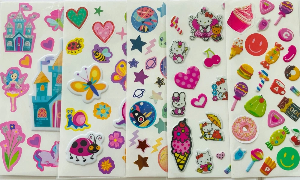 All stickers are BRAND NEW | Still in their original packaging! Mixed Sticker Lot | The Ultimate Kit | Qty. 500+ Stickers | High Quality Only! Fun Assortment of Puffy, Scrapbook, Cartoons, Bubble, Pop Up Stickers Packs For Everyone! You will receive 27+ Sticker Sheets of beautiful colorful assortment. I have included a large variety of pictures of the assortment available. The pictures give you an idea of what you will be receiving. Please Note: You will not receive everything pictured. Please contact me with any special requests. This HUGE Variety of fun designs stickers can be used in parties, classroom, school and home, good for reward for students, potty training, adding inside a birthday card, game activities, entertaining toddlers, etc. Perfect Gifts for Kids & all Occasions: Can be given as a gift for kids, girls, boys, toddlers, teens, students, friends, and classmates, they will love it! Each package of stickers is a different style & theme with some lovely embellishments like rhinestones, ribbons, buttons and other 3D details that make these quality stickers look so unique!
