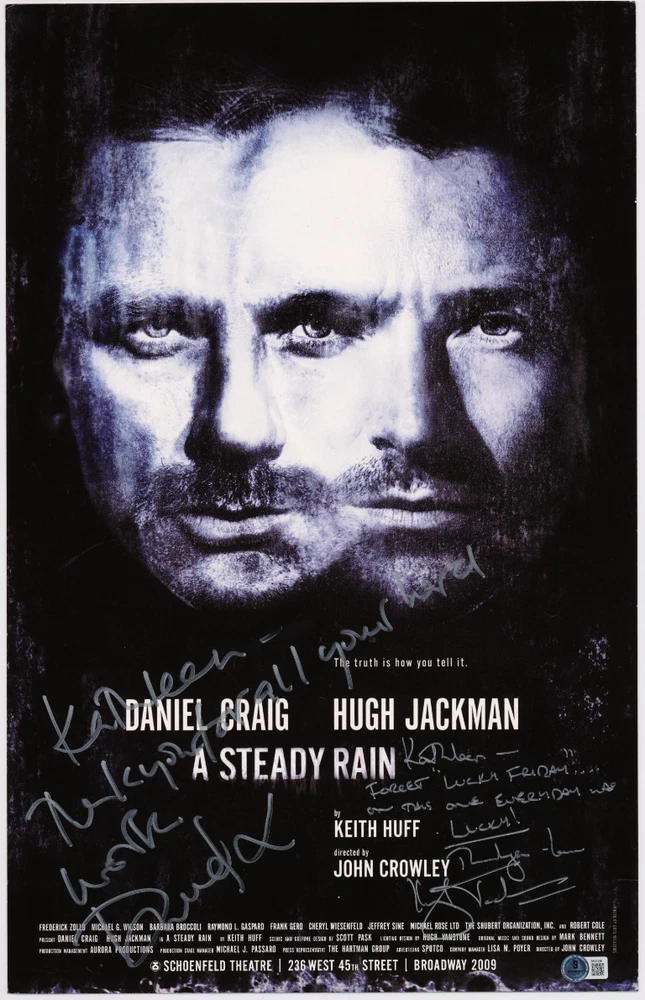 Hello! Thank you for checking out an Authentic Memorabilia Company listing! We are pleased to offer the following item and will happily answer any questions that you may have about it! Condition: Item is in good condition overall Authentication: Beckett Authenticated (Hologram) Notes: Measures 14 by 22 inches. Cardstock material poster/window card for their play A Steady Rain. Signed by both in Silver ink. Minor wear throughout, particularly to the corners. The Authentic Memorabilia Company Ltd. is proud to offer a Lifetime Guarantee of Authenticity. Many of our items are already authenticated or sourced from some of the collectible hobby's most reputable authorities including Steiner Sports, Upper Deck, Tri-Star, Professional Sports Authenticator (PSA), James Spence Authentication (JSA), Beckett Authentication Services (BAS), Sportscard Guaranty (SGC) and Roger Epperson Authentication Limited (REAL). Items that come with our company Certificate of Authenticity (COA) or Letter of Authenticity (LOA) also come with a Lifetime Guarantee of Authenticity. If an item purchased from us does not pass a reputable authentication service of your choosing, we will refund the entirety of your purchase price after it is returned to us. For additional information on reputable authentication services please see terms or contact us. Feel free to message us regarding wanting additional photos, information or any other concerns you may have.