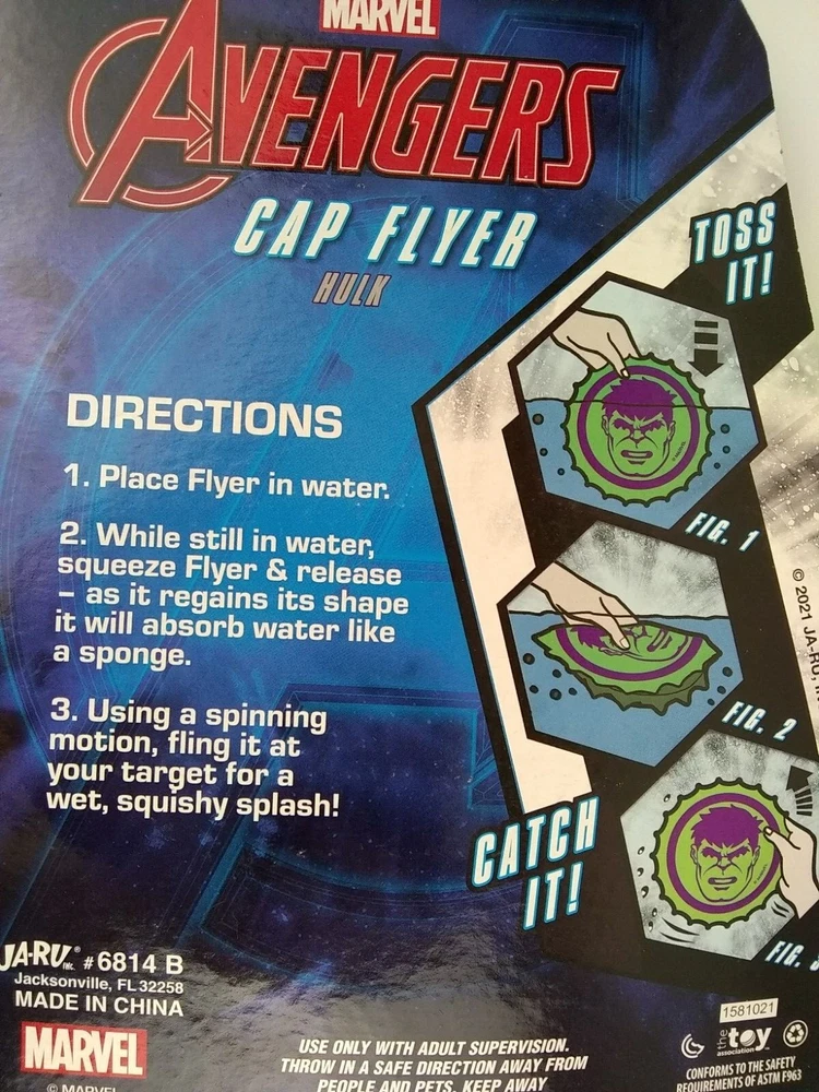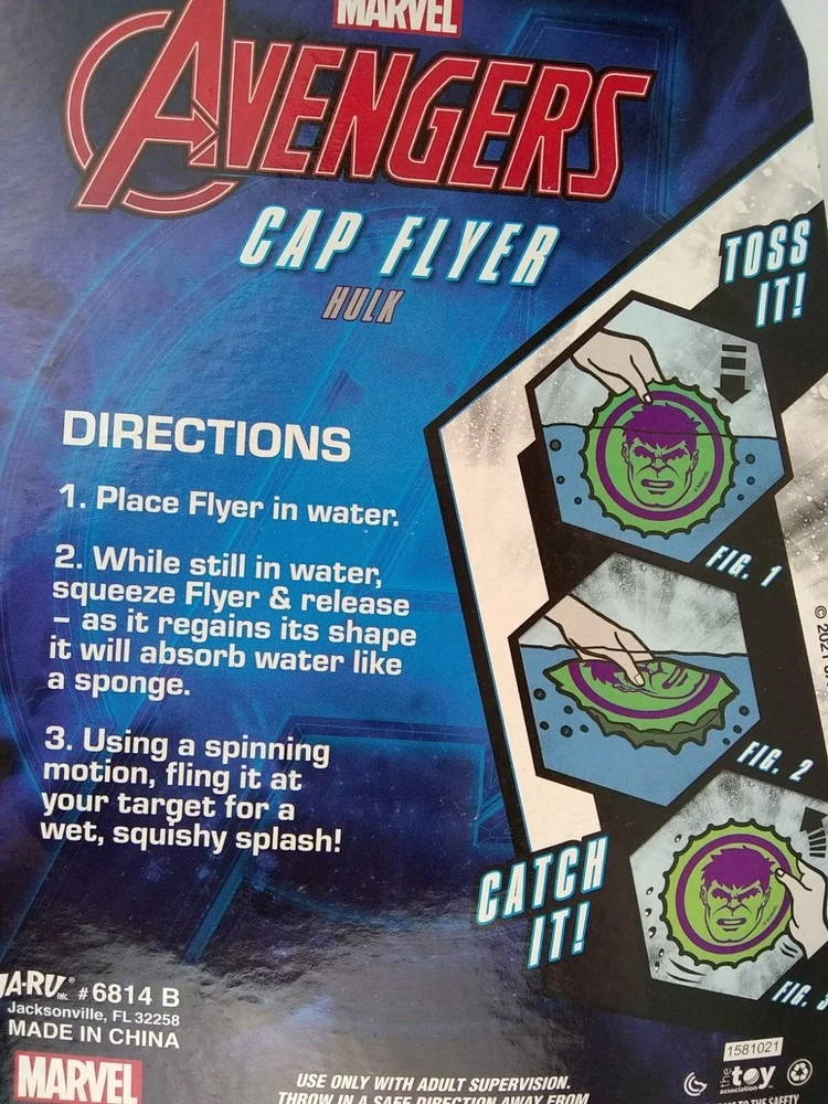 See condition above: New up for considerations is ONE (1): squishy, wet splash, spinning motion when thrown The Incredible Hulk Brand: Ja-Ru / the toy association Character: The Hulk (Marvel Advengers) Description: Swim Pool Toy Disc Item: Cap Flyer features: Fling it, Catch it, absorbs water like a sponge instructions: soak & throw Year: 2021 size approximate: 5.50 in Diameter by 3/4" Tall package size approx: 6 1/2" x 9" Color: Green, Purple material: Foam ages: 4 & older mpn: 6814 B upc: 075656268142 p/n: 1580421 Made in: China Shipping Method: ships bubble-wrapped in a box If you have any questions, please do not hesitate to message me. Thank You! Seller info only below: item location: RM1 A-10