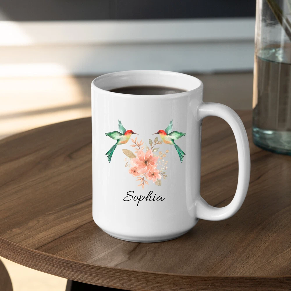 Hummingbird Mug Personalized Birds Mug Hummingbird Gifts For Women Humming Bird Gifts Humming Bird Mug Bird Lover Gifts Bird Mug Product Details.. This high quality 11oz. ceramic white mug has a premium hard coat that provides crisp and vibrant color reproduction sure to last for years. Perfect for all hot & cold beverages. The highest quality printing possible is used. It will never fade no matter how many times you wash it. Material: 100% Ceramic. Print both sides. Dishwasher and Microwave Safe. High Gloss + Premium White Finish. Printed in the U.S.A. Personalized & Custom. We support personalized and custom mug to add custom, when placing an order, you can add notes to the "order note" in shipping address section. Also you can contact us directly via message. Shipping Info. Ready to ship in 1 to 2 business days, All products are made-to-order and proudly printed in the United States. Shipped by USPS and DHL, You will receive your order in 5-7 days. Replace & Refund. All products are defective during shipping broken, chipped will be replaced free of charge. You are not satisfied with the product, we will refund 100% money to you. If any other issues arise, please do not hesitate to message, we would be more than happy to assist you.