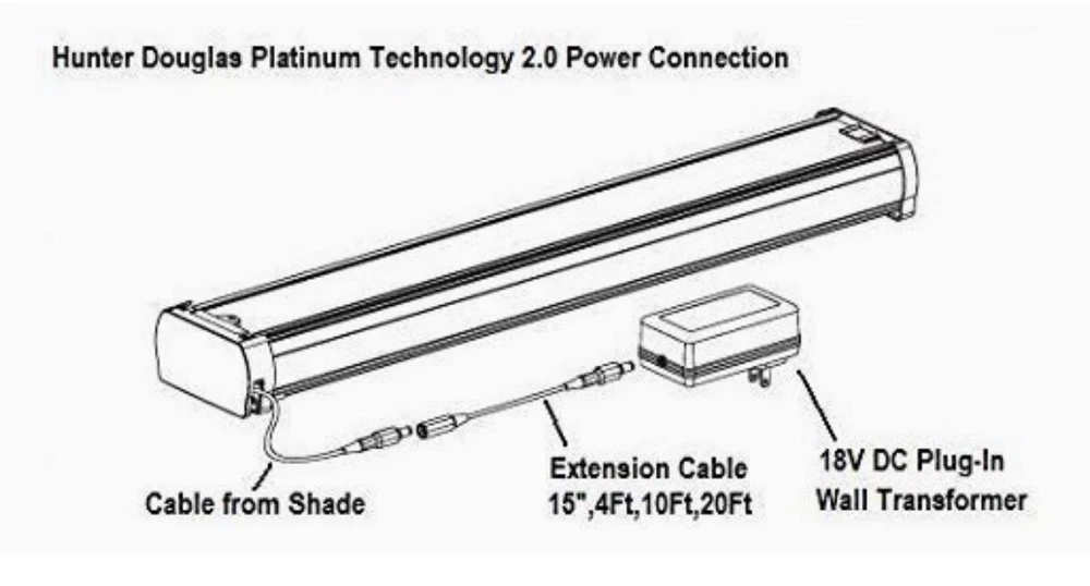 -18V Power Cable 20 Feet Long -Male-to-Female Hunter Douglas 20FT Cable ONLY to connect a Hunter Douglas Blind to a Hunter Douglas Rechargeable Battery, Battery Wand or 18v Transformer