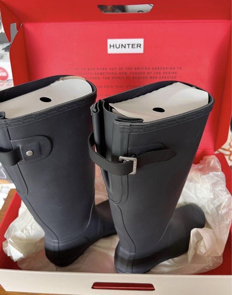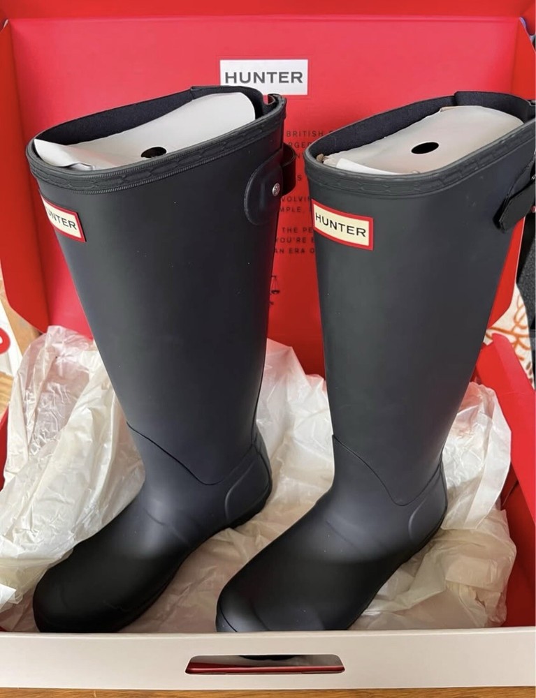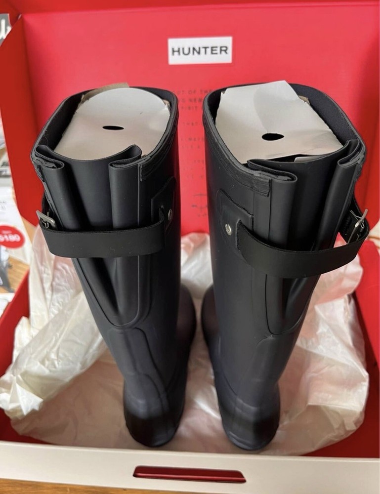 Hunter Tall Rain Boots in matte black with adjustable strap
