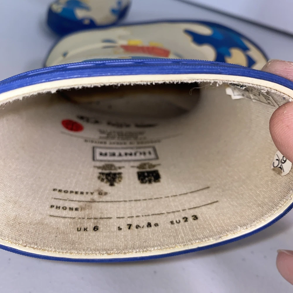 📝 Description: For sale are Hunter Wellington Girls Peppa Pig Rain Boots designed for little kids. Brand: Hunter Style: Wellington Rain Boots Theme: Peppa Pig Size: 7 Color: Blue Condition: Used (see pictures) Waterproof: Yes, fully waterproof as expected from Hunter boots Material: Rubber Fit: True to size (adjust if needed) Great For: Puddles, rainy days, outdoor play These adorable Peppa Pig–themed boots are perfect for keeping little feet dry and happy. Quality waterproof construction with a fun character design that kids love! Comes AS‑IS — boots only, unless additional items are specified in photos or further details provided. 📜 Seller Reputation & Policy: (Included in every listing) REPUTATION I take my eBay reputation very seriously. I strive hard for a consistent 100% positive feedback rating. I believe excellent customer service is the key to a thriving business and will do my best within reason to cater to your needs. If you have any issues whatsoever after receiving your item please contact me immediately and before leaving feedback and I will do my absolute best to fix or alleviate the situation for you. All items that I sell are 100% guaranteed to be authentic or your money back. DISCLAIMER Please understand that this item is being sold as pre‑owned. Items may have wear, stains, tears, or other imperfections. I always strive to cover all angles of any item to accurately describe the condition in the pictures. Please examine all pictures closely before purchasing. Items will be shipped within 24 hours and according to USPS Publication 52. All items will be labeled and shipped as GROUND TRANSPORTATION ONLY (USPS Parcel Ground or Retail Ground). A tracking number is uploaded with every shipment. I only ship to the continental 48 U.S. states. PAYMENT Payment is due immediately upon purchasing. Please only buy if you are serious about paying. RETURNS Items may be returned within 30 days, hassle‑free. Must be in the same condition with all original pieces. Buyer pays return shipping unless the item was not as described. Refunds issued within 48 hours of return. Excessive wear may incur a fee up to 20%. Damage or tampering may incur up to a 50% fee. Items over $200 are video‑recorded being packaged. Fraudulent returns will be escalated to authorities if necessary. THANK YOU FOR YOUR BUSINESS!