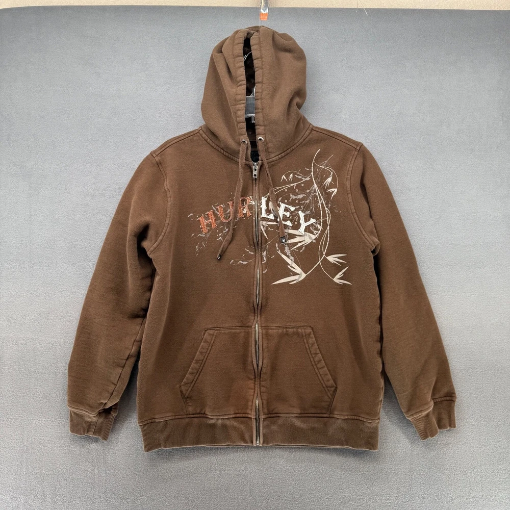 Hurley Full Zip Hoodie Mens Large Brown Distressed Cyber Grunge Punk Jacket - Heavy Buy More and Save! Combined shipping for US customers. $1.99 shipping for each additional item. Combined shipping will automatically calculate when you use the shopping cart. Fast Shipping! We ship daily. 60 Day Return Policy. Images: We strive to take photos with accurate color. Color may vary slightly based on different monitor settings.