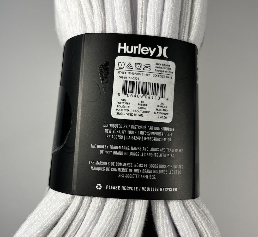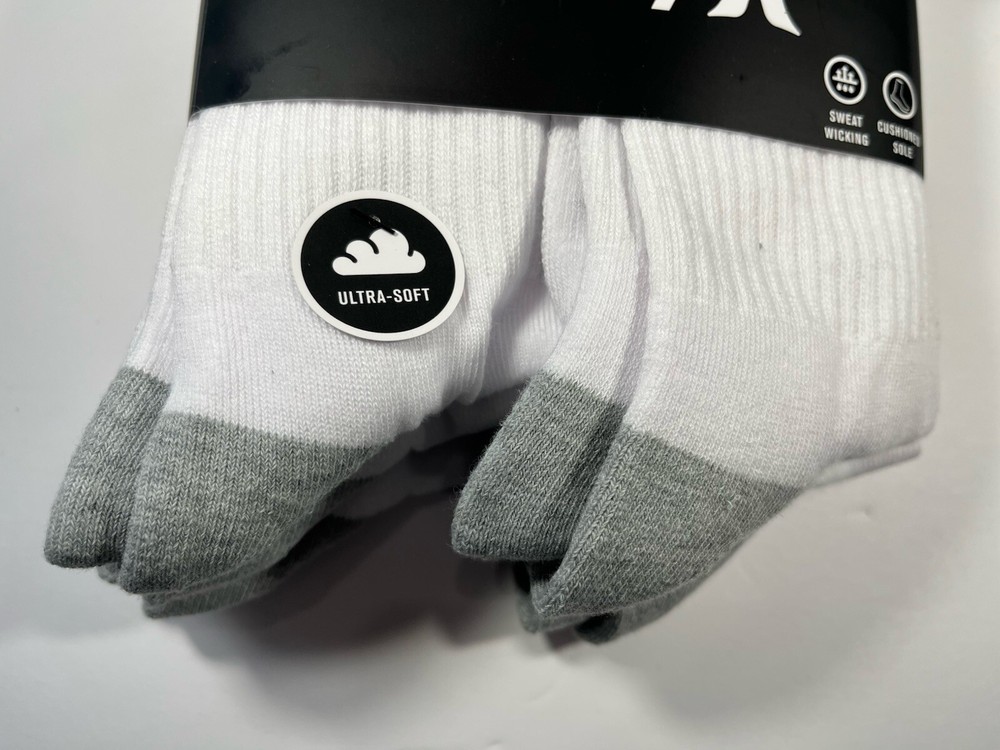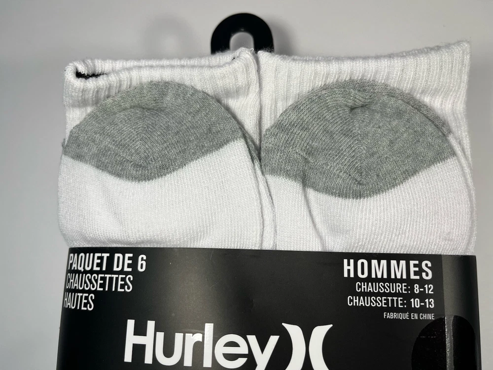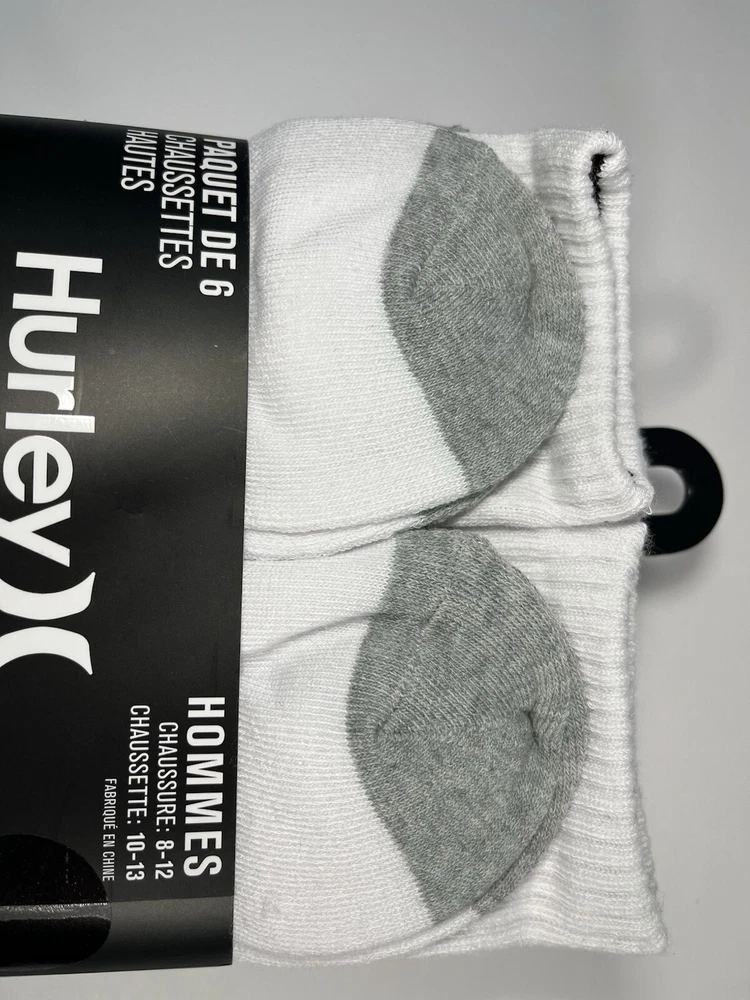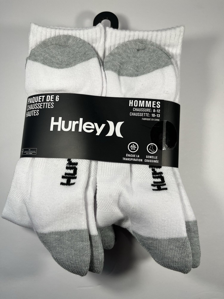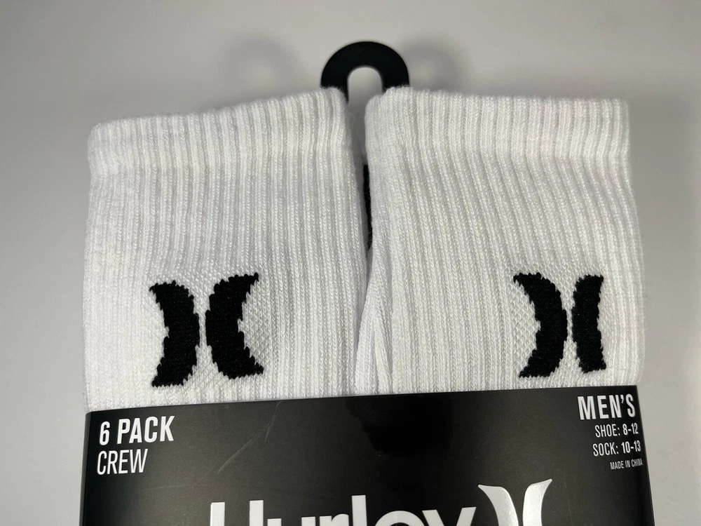 The Hurley Cushioned Crew Socks are a set of 6 pairs designed for men in sizes 8-12. These ultra-soft socks are made of polyester and spandex, providing a comfortable and stretchy fit. The white socks feature a crew length and come with cushioning for added support during various activities like gym training, cycling, golf, baseball, and more. With a machine-washable design, these Hurley socks are suitable for a range of sports and casual wear, making them a versatile addition to any wardrobe.