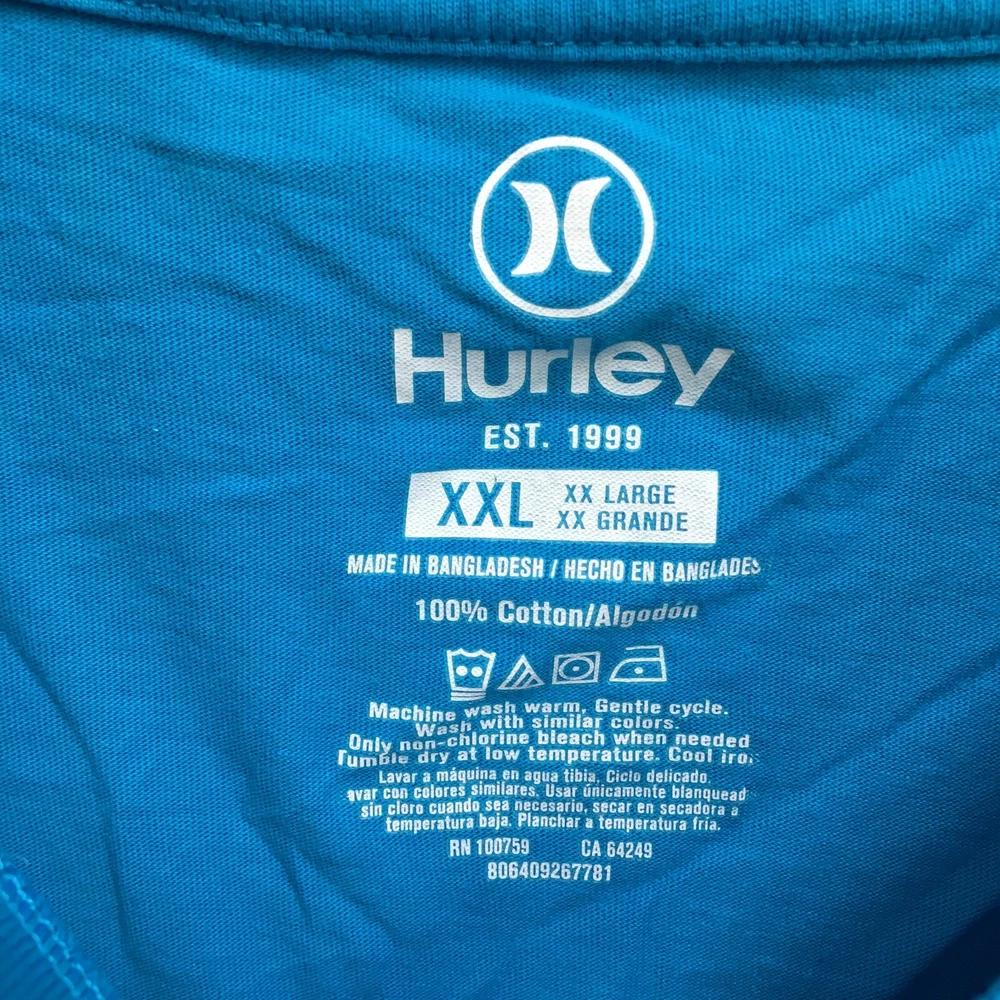Hurley Shirt 2XL XXL Blue Surf Spell Out Logo Casual Cotton Short Sleeve Mens