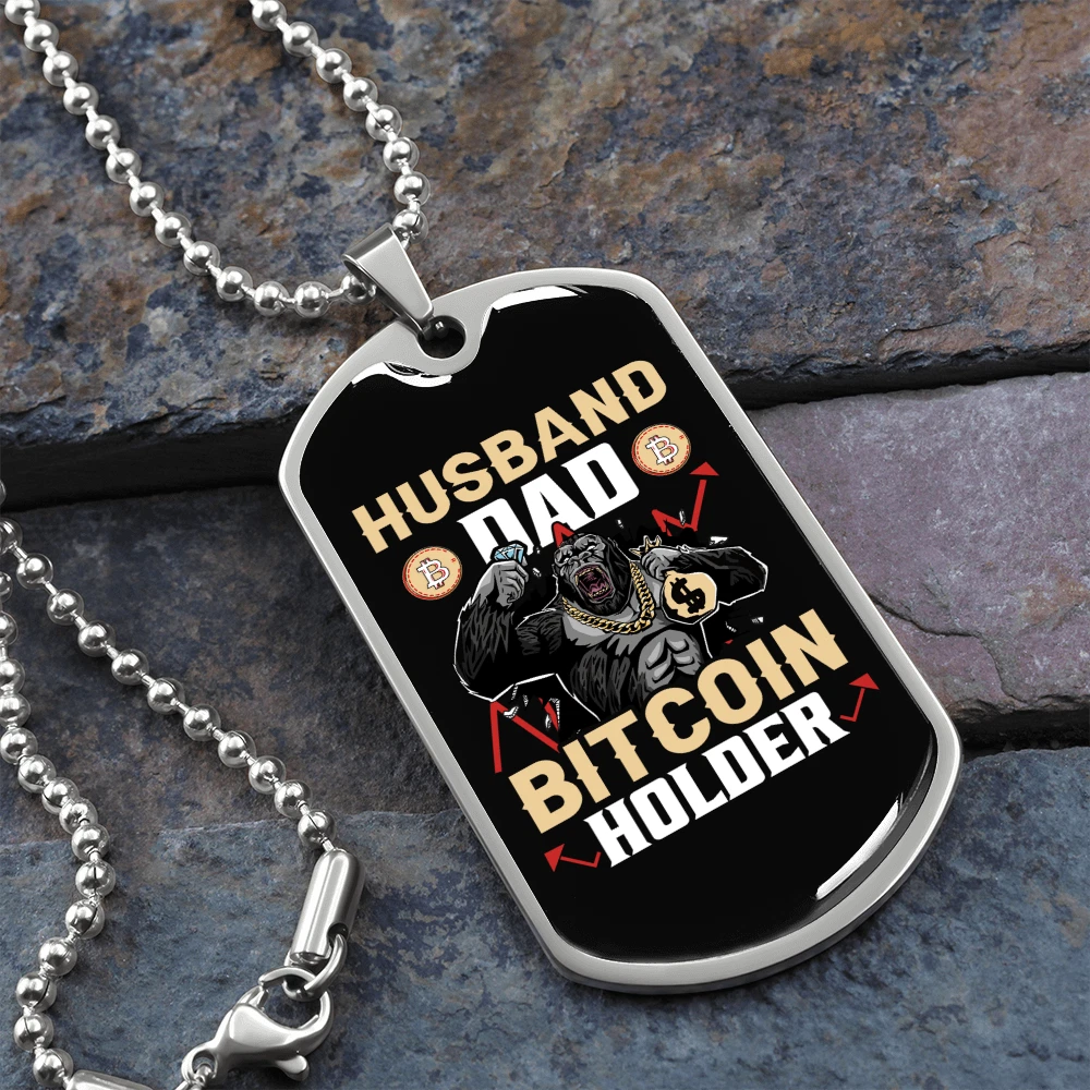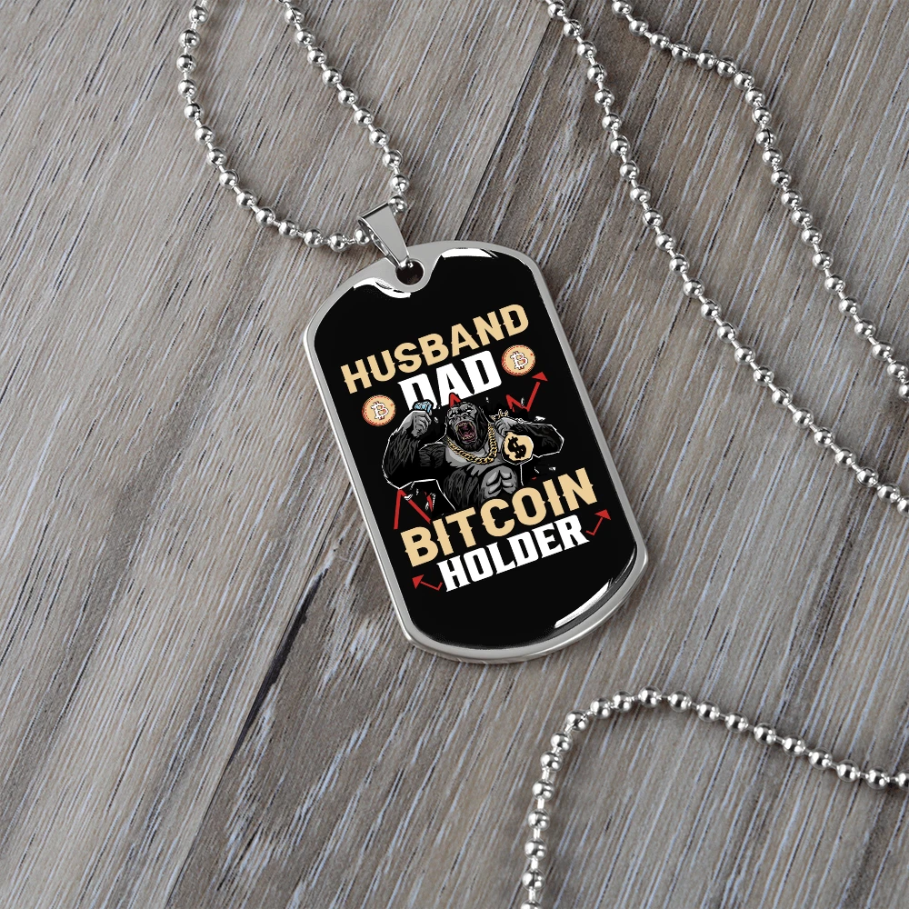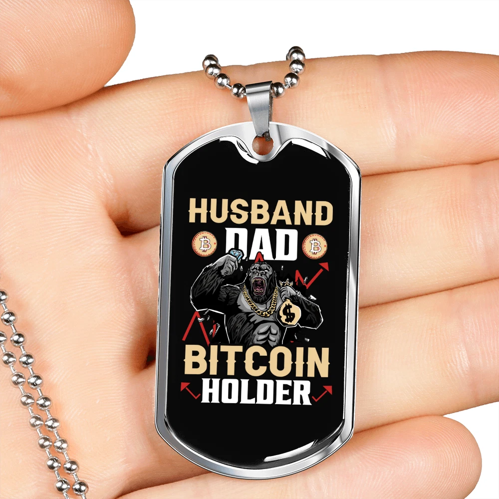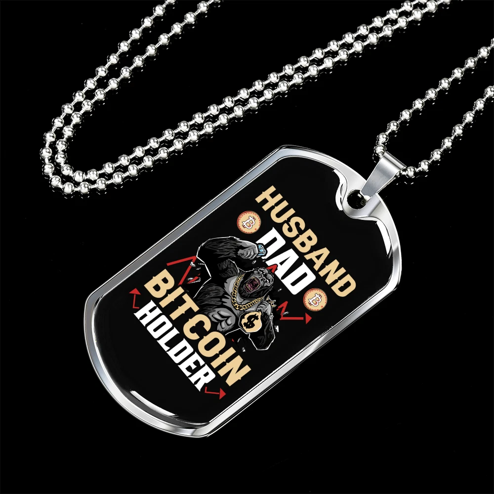 Customized: Yes Main Stone: None Material: Glass Chain Type: Ball Color: Multi Color Base Metal: Stainless Steel Brand: Express Your Love Gifts Metal: Surgical Steel Closure: Lobster Clasp Personalize: Yes MPN: 6943011504216 Type: Pendant Pendant/Locket Type: Dog Tag Necklace Length: 24" Features: Adjustable Country/Region of Manufacture: United States Pendant Shape: Dog Tag Theme: Bitcoin, Crypto, Blockchain