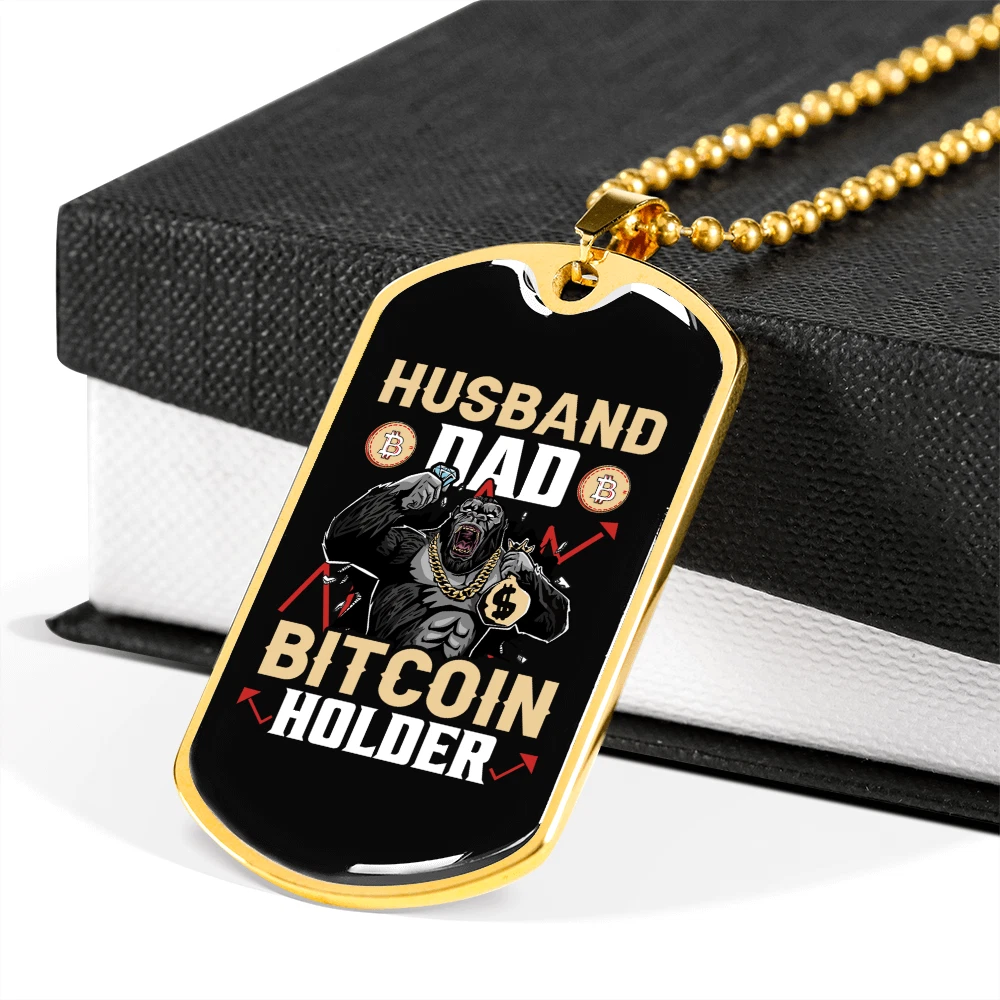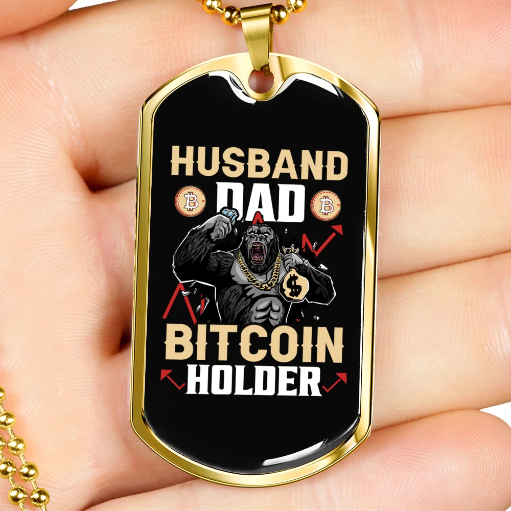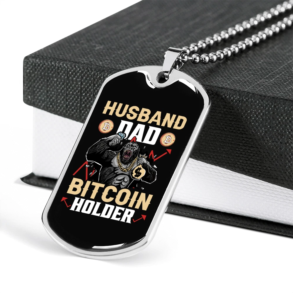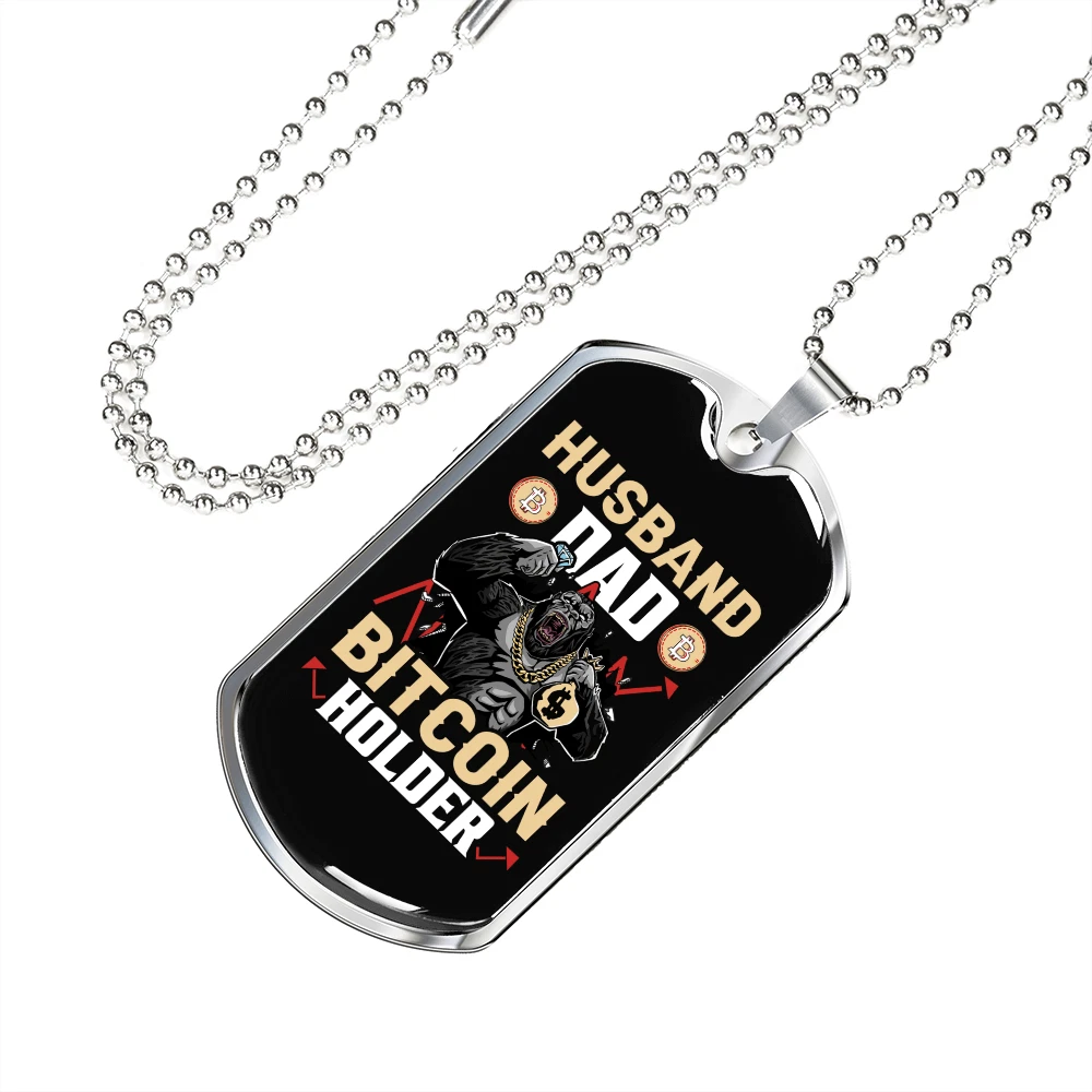 Customized: Yes Main Stone: None Material: Glass Chain Type: Ball Color: Multi Color Base Metal: Stainless Steel Brand: Express Your Love Gifts Metal: Surgical Steel Closure: Lobster Clasp Personalize: Yes MPN: 6943011504216 Type: Pendant Pendant/Locket Type: Dog Tag Necklace Length: 24" Features: Adjustable Country/Region of Manufacture: United States Pendant Shape: Dog Tag Theme: Bitcoin, Crypto, Blockchain