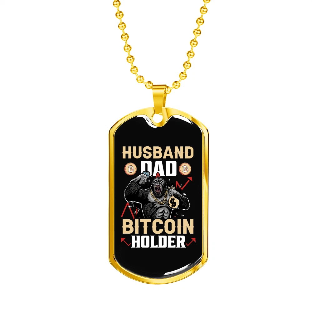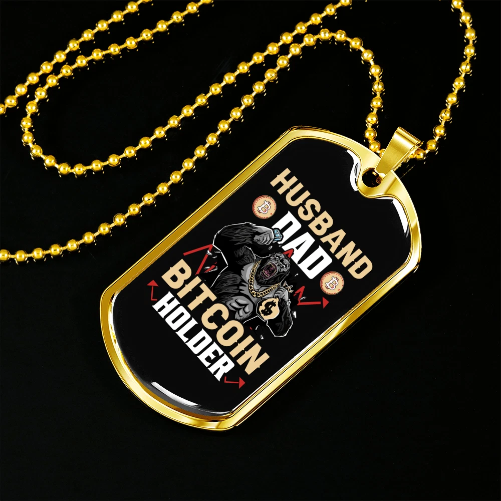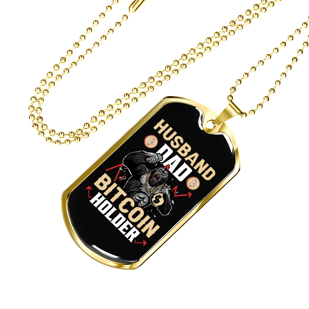 Husband Dad Holder Necklace Stainless Steel or 18k Gold Dog Tag