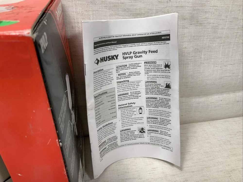 Husky Gravity Feed HVLP Spray Gun HDS790 Paint Tool Great used condition. Does not look like it was ever used. With original box and manual.