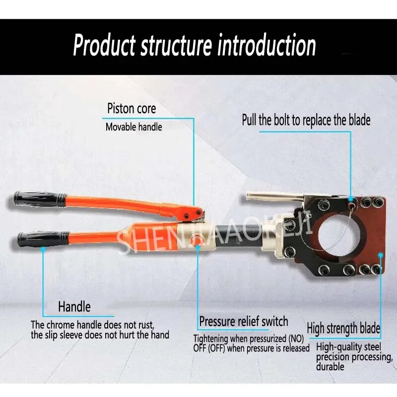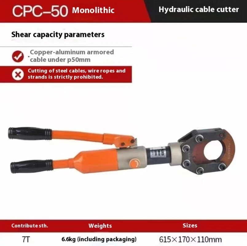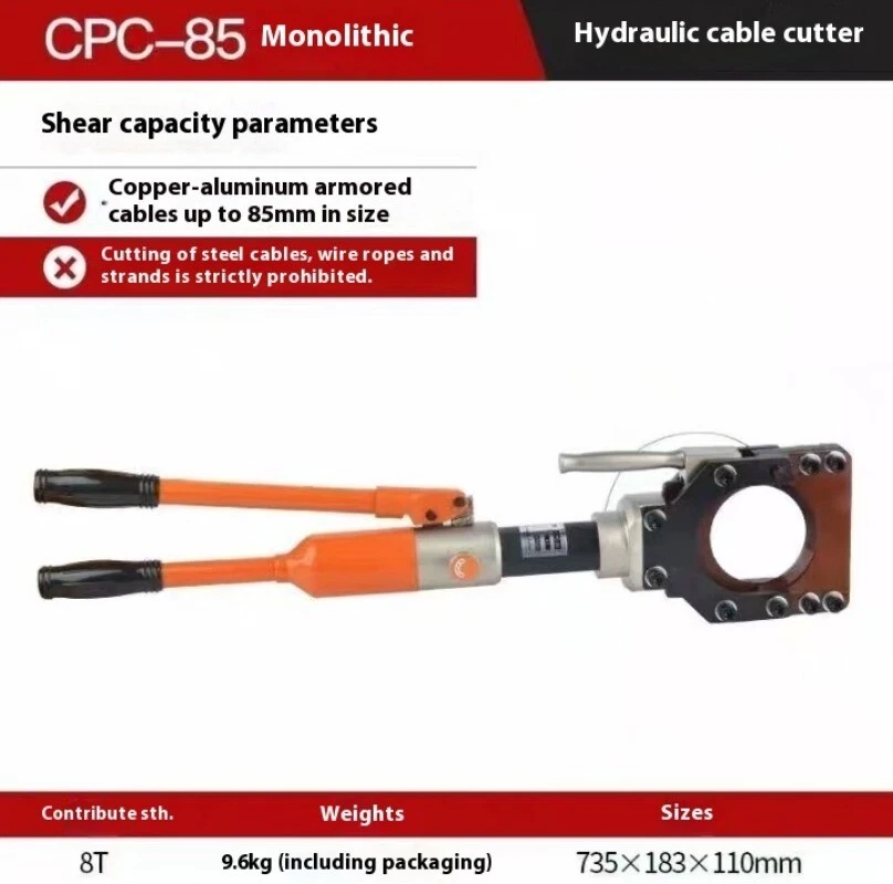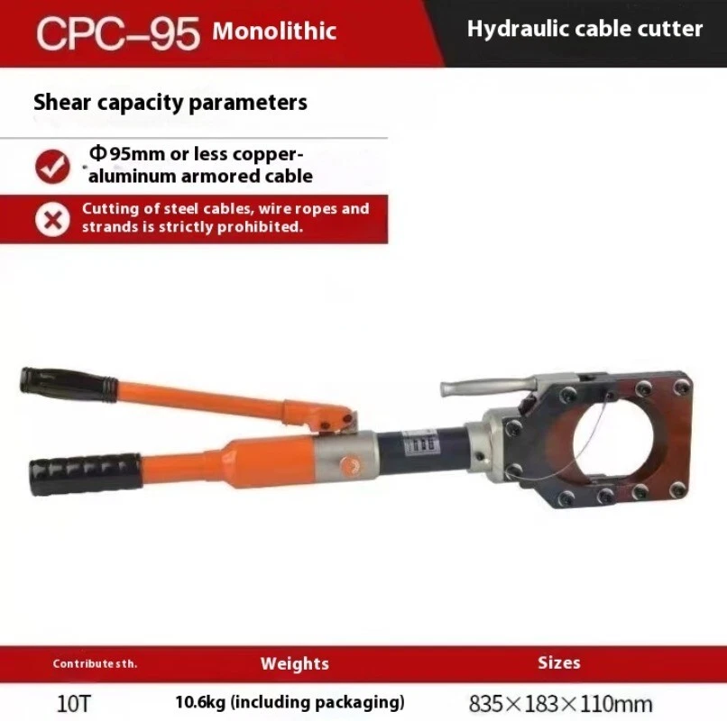 Hydraulic Cable Cutter Hydraulic Crimping Tool CPC-95 Overall Cable Scissors Fast Copper Armored Cable Clamp Bolt Cutter Model: CPC-95 Output: 10T Shear range: copper armored cable below Φ95mm Hydraulic Cable Cutter Hydraulic Crimping Tool CPC-95 Overall Cable Scissors Fast Weight about: 10k Size about:785*150mm