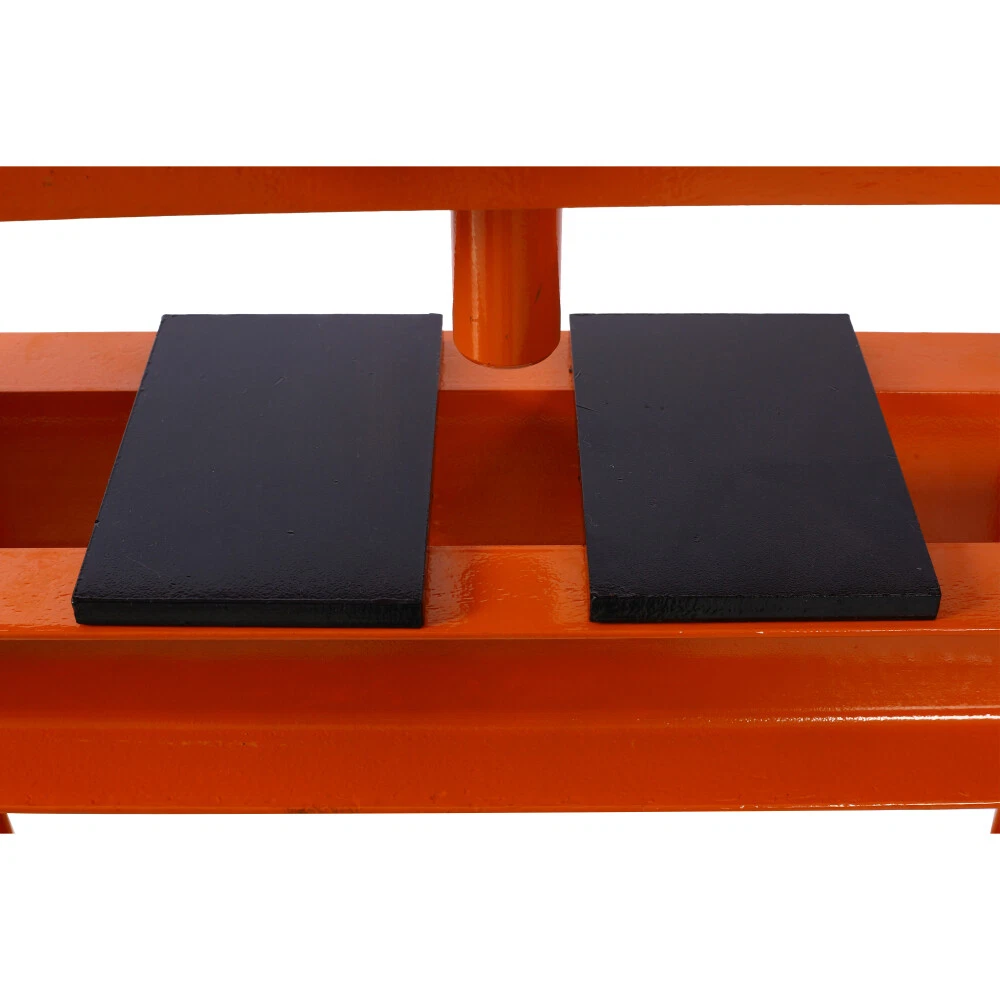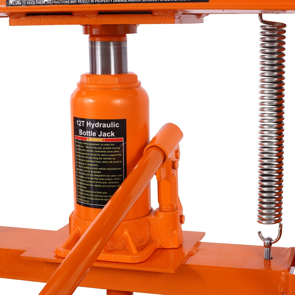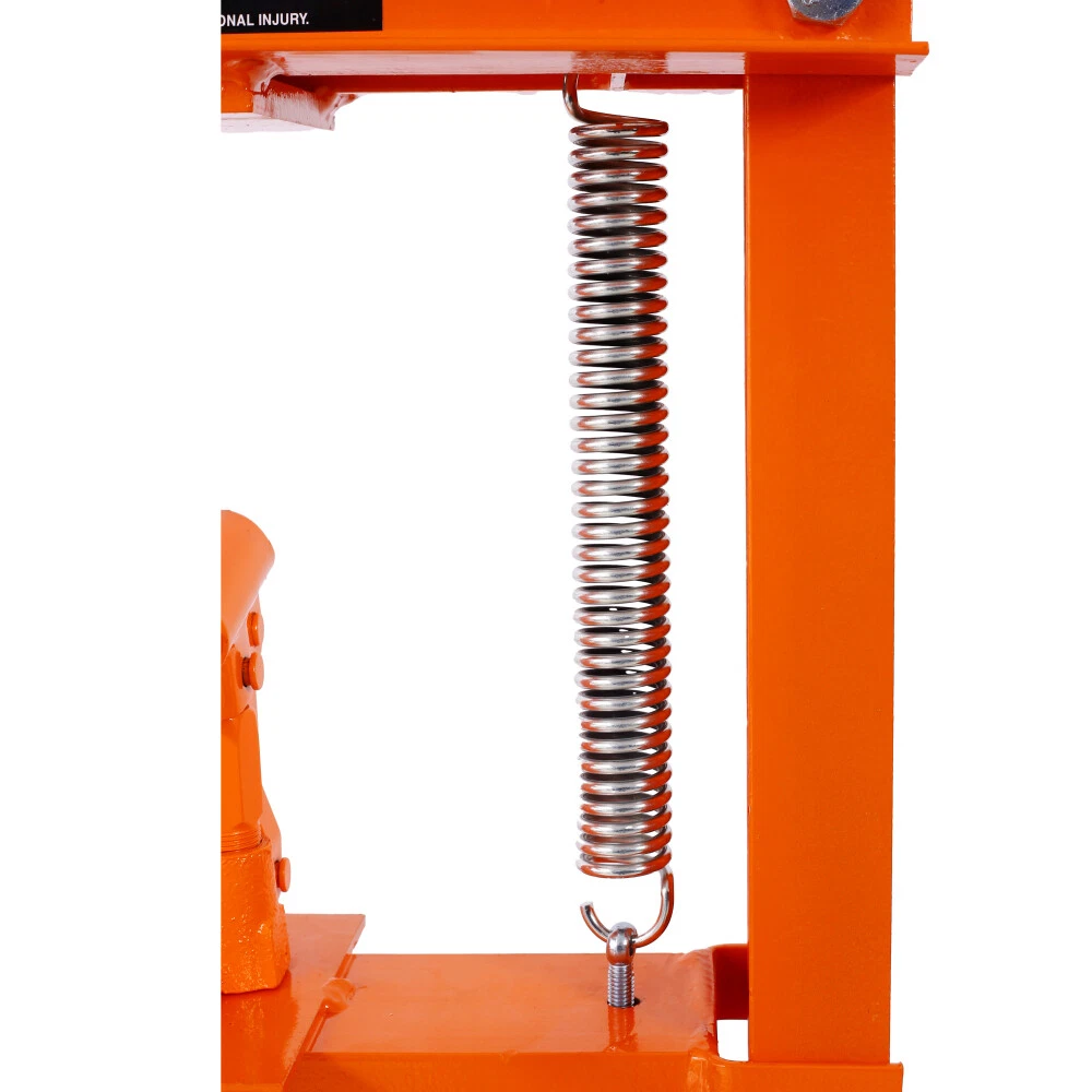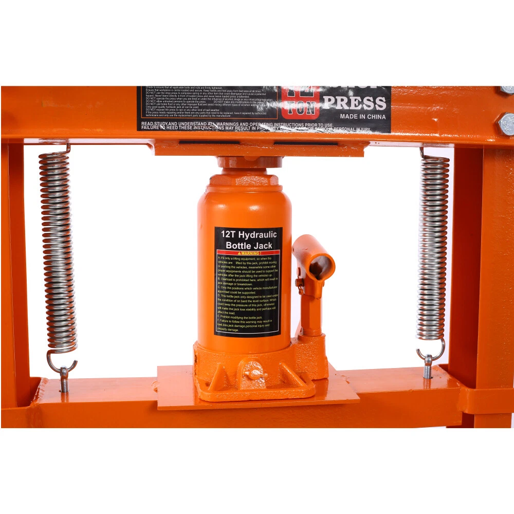 Hydraulic Shop Press ,12-Ton Capacity , Floor Mount ,with Press Plates, H-Frame Features Versatile working table: Our hydraulic shop press features an adjustable working table with 8 holes on each side, allowing you to easily customize the height according to your specific needs and projects. Powerful 12-ton capacity: Equipped with a heavy-duty bottle jack with a 12-ton capacity, our hydraulic press is designed to effortlessly handle tasks like straightening and bending metal. It also comes with press plates for added convenience. User-friendly operation: Operating our hydraulic shop press is a breeze. Simply press or lift the long handle of the bottle jack to easily apply the necessary force. Please ensure all parts are fully secured before use. The pressure of the hydraulic jack can also be easily adjusted by turning the knob. Durable construction: Crafted from high-quality steel with a power coating, our hydraulic shop press boasts excellent durability and longevity. The inclusion of thickened springs ensures a robust pulling force and fast oil return. Wide range of applications: Our hydraulic shop press is perfect for various metalworking tasks, including bending, straightening, and stamping. It is an indispensable tool for auto repair shops, garages, and other small repair businesses. Product Information Item :Shop Press Product Type: General Item Product Name: Hydraulic Shop Press ,12-Ton Capacity , Floor Mount ,with Press Plates, H-Frame Garage Floor Press, Adjustable Working Table Height,orange Main Color: Orange Main Material: Steel Product Dimensions Assembled Length (in.): 23.00 Assembled Width (in.): 22.00 Assembled Height (in.): 52.40 Weight (lbs.): 86.00