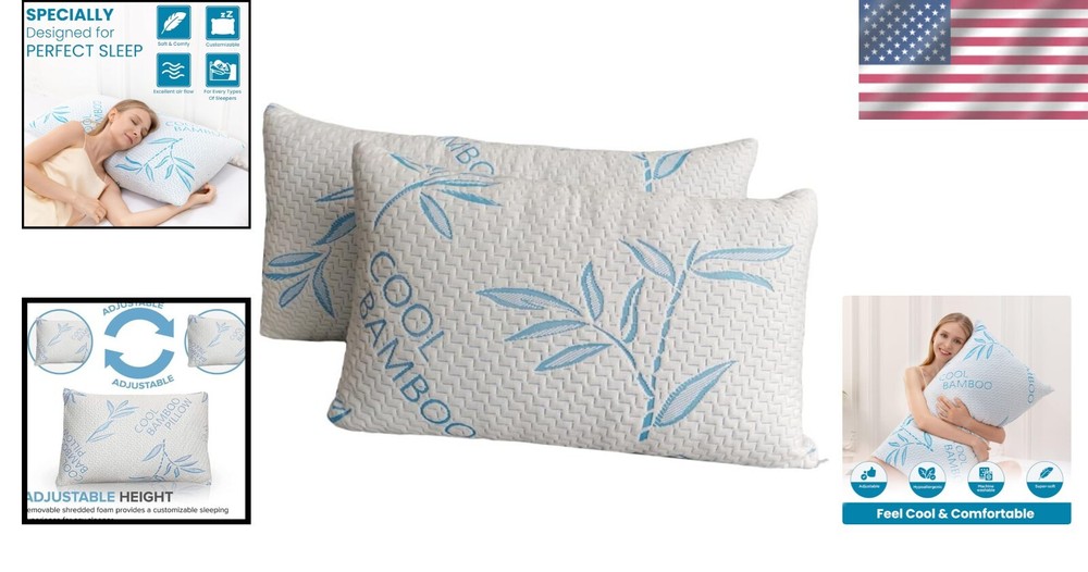 $ 95.3Queen Size Shredded Memory Foam Pillows Set of 2 - Extra Firm Adjustable Support