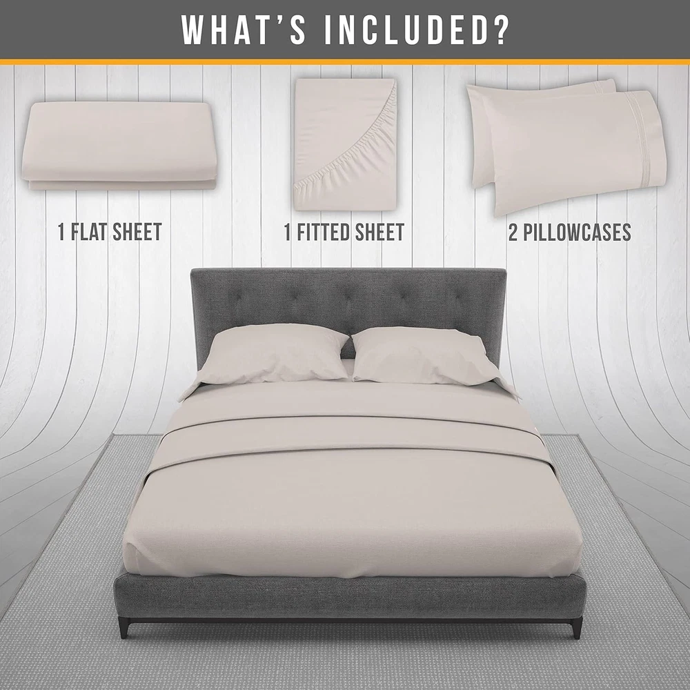 Hypoallergenic Microfiber Full Size Sheet Set - Soft and Breathable Comfort ‹ › ‹ › ‹ › ‹ › ‹ › ‹ › ‹ › ‹ › ‹ › Hypoallergenic Microfiber Full Size Sheet Set Indulge yourself in the luxurious embrace of our Hypoallergenic Microfiber Full Size Sheet Set, designed for the ultimate comfort and tranquility in your sleep sanctuary. Product Details: 4-Piece Configuration: Includes 1 flat sheet (81”x96”), 1 fitted sheet (54” x 75”), and 2 embroidered pillowcases (20”x30”). A complete bedding solution in elegant cream. Secure Mattress Fitting Technology: Crafted with deep pockets suitable for mattresses up to 15 inches, featuring elastic all around and corner straps for a perfect fit - no clips or fasteners needed. Unmatched Comfort: Made from 100% double brushed microfiber, these sheets provide an exquisitely soft and cozy feel that ensures a restful night every time. Experience the unique texture that retains its softness wash after wash. Hypoallergenic Material: Thoughtfully crafted free from harmful substances, offering an ideal sleeping experience for allergy sufferers - enjoy a breathable and soothing night’s sleep. Easy Care Durability: Designed to be shrink, fade, and wrinkle-free, these sheets can be machine washed with similar colors and tumble dried on low for effortless care. Why Choose Our Hypoallergenic Microfiber Sheet Set? Elevate your sleep experience with our Hypoallergenic Microfiber Sheet Set, where every detail is tailored for comfort and care. The expert craftsmanship ensures a snug fit and lasting softness whether it’s your well-deserved rest or quality time spent in bed. Perfect for those sensitive to allergens, these sheets promise a peaceful night’s sleep, night after night. Banishing wrinkles and fading, they complement any décor while allowing you to enjoy a stylish and serene environment. Make the choice for comfort and quality—order your Hypoallergenic Microfiber Full Size Sheet Set today and transform your bedroom into a haven of relaxation. Shipping Free & Fast Shipping - We offer free shipping to most of the USA with a normal delivery time of 3-10 businessdays. However, due to various situations, additional delivery time (up to 3 weeks) may be required for some items. Alternative Carriers - We may use alternative carriers (e.g. USPS, FedEx, UPS, etc.) to ensure your package arrives safely and on time. Due to the use of multiple carriers, we are unable to provide a tracking number automatically. Handling Time - Orders are processed and shipped within 1-5 business days of receiving cleared payment. Shipping Restrictions - Shipping to Alaska, Hawaii, Puerto Rico, Guam, and other US territories may incur shipping charges or delivery restrictions. Please contact us before ordering, or your order can be refunded/cancelled. State Restrictions - There may be restrictions based on your state of purchase. For example, certain items may not be shipped to California due to state regulations. Contact for Tracking Updates - If you require tracking updates or have any concerns about the delivery of your order, please feel free to contact us, and we will be happy to assist you. Return Please see our ebay return policy. We do not accept return on most products. This is to avoid customers mis-using ebay returns. All sales are final. Please be sure to check the return policy listed at the top of the listing. In rare cases, we may accept returns, if the buyer pays both ways shipping and 20% restocking fee. If you are un-sure of return policy of a particular item, please ask before buying. Payment We accept all major credit cards, PayPal, and Apple Pay for your convenience. Your payment information is secure and encrypted to ensure a safe and seamless transaction. Please complete your payment within 3 days of purchase to avoid any delays in shipping. Feedback Your feedback is extremely important to us. We strive to provide the best products and customer service possible. If you are satisfied with your purchase, please take a moment to leave us a positive review. If you have any concerns or issues with your order, please contact us before leaving negative feedback. We are committed to resolving any problems and ensuring your satisfaction. Contact Us If you have any questions or concerns, please feel free to reach out to our customer support team. You can contact us through the eBay messaging system. We are available Monday to Friday, 9:00 am to 5:00 pm EST, and we will do our best to respond to your inquiry within 24 hours. Buy it now and enjoy a pleasant shopping experience! UPC: Not Set Item Length: Not Set Item Width: Not Set Unit Quantity: 1 Material: Microfiber Character: Not Set Features: Breathable,Deep Fitted,Deep Pocket,Fade Resistant,Shrink Resistant,Wrinkle Resistant,Non-Toxic Material,Skin Friendly,Ideal for Sensitive Sleepers,Lightweight Theme: Love Care Instructions: Machine Wash,Machine Wash in Cold,Tumble Dry Low,Do Not Bleach,Do Not Iron,Do Not Dry-Clean Department: Adults Room: Bedroom Labels & Certifications: Not Set Brand: Unbranded Size: Full Type: Sheet Set Color: Beige Pattern: Solid MPN: Not Set Character Family: Not Set Country/Region of Manufacture: Not Set Style: Hotel Thread Count: 1800 Shape: Rectangular Model: Not Set GSM (Grams per Square Meter): Not Set Product Line: Not Set Unit Type: Unit