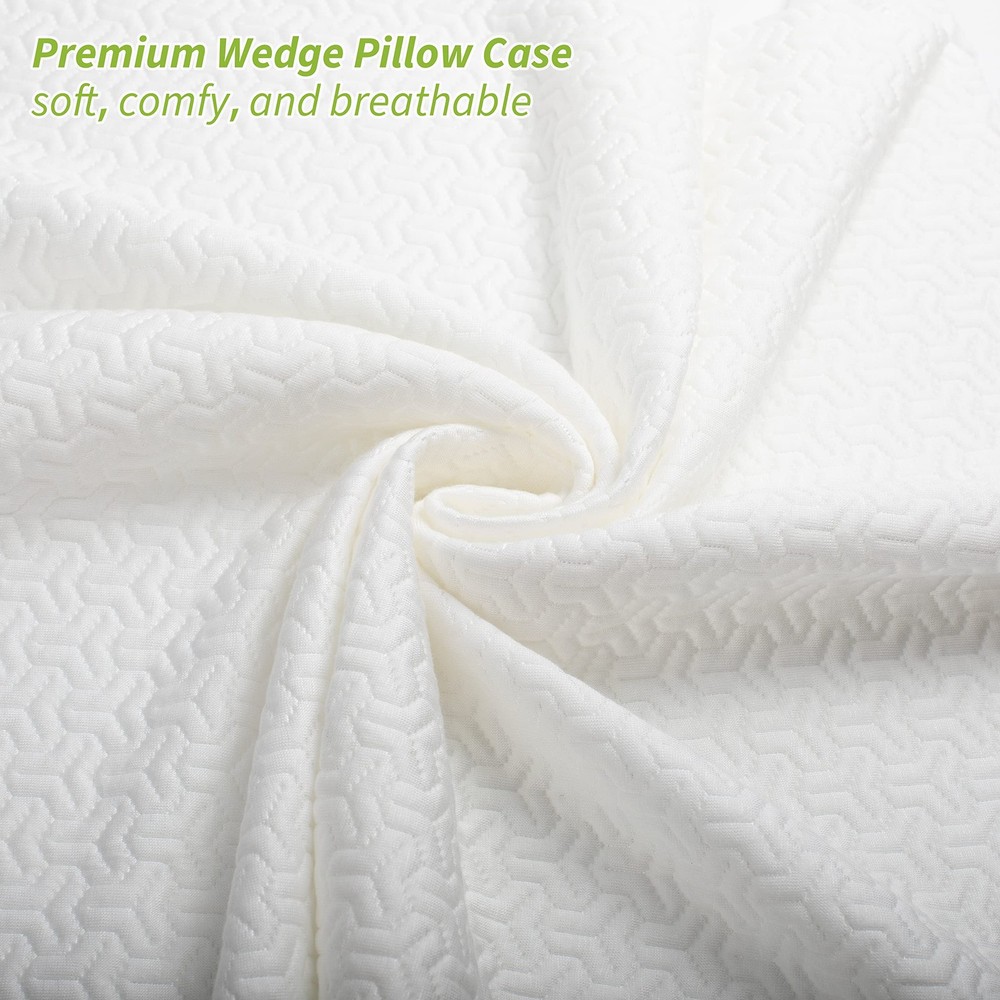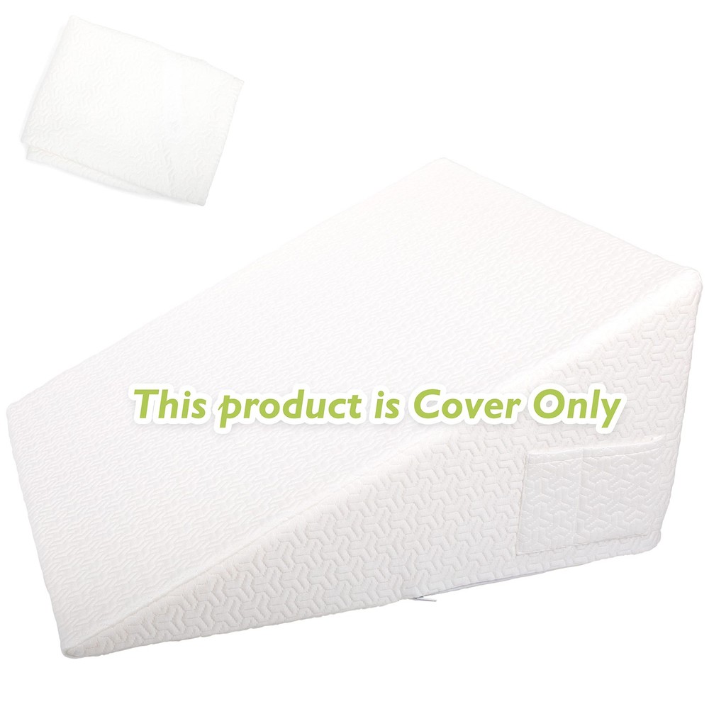 Are you looking for a way to keep your 25x24x12 inches bed wedge pillow clean and protected? Look no further than our wedge pillow case cover! Our wedge pillow cover is spun and knitted from long, strong, soft fibers derived from the pulp of bambooplants. This makes it breathable, stretchable, and soft against your skin. It's also lightweight and durable, perfect for maintaining your wedge pillow in top condition. We recommend changing the pillowcase at least once a week. A clean sleeping environment enhances your rest, leading to better health. Regularly changing your pillowcase supports healthy, restful sleep. Additionally, we offer a risk-free purchase policy, ensuring you're getting the best possible wedge pillowcase. SOFT and BREATHABLE. The wedge pillow cover is made from 40% viscose derived from bamboo, which makes it more breathable and stretchable than cotton. This material feels naturally soft and lightweight against your skin. It also tends to be more durable than a standard pillow case cover. PERFECT FIT. This wedge pillow case measures 25x24x12 inches. It fits your wedge pillow perfectly. Add this pillowcase, made from soft viscose derived from bamboo, to get cozy and also protect your wedge pillow from stains, keeping it clean. EASY TO CLEAN. Simply toss this removable pillow cover with a zipper into the washing machine and set it on a delicate cycle. Please avoid using bleach. It is recommended to use a mild detergent and wash in cold water, with a maximum temperature of 30℃(86℉). SIDE POCKET. Convenience has never been so accessible! The bed wedge pillow cover features pockets on either side, providing an instant and easy-to-reach storage space for small items commonly used in bed. ZERO-RISK PURCHASE. We are so confident in the quality and durability of our pillow cover, made from 40% viscose derived from bamboo, that if the product does not meet your expectations, if you simply change your mind, or if you are not satisfied with it, you can return it with no questions asked.
