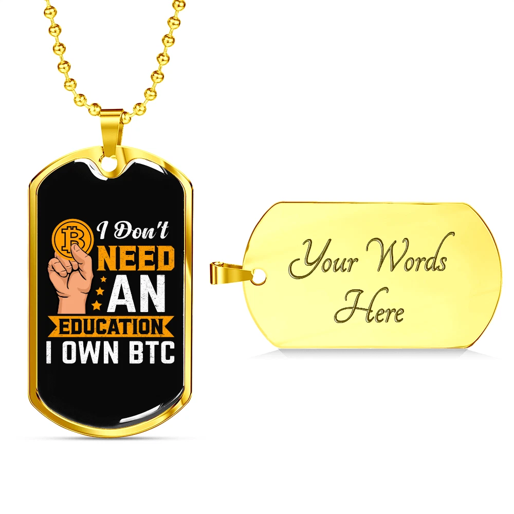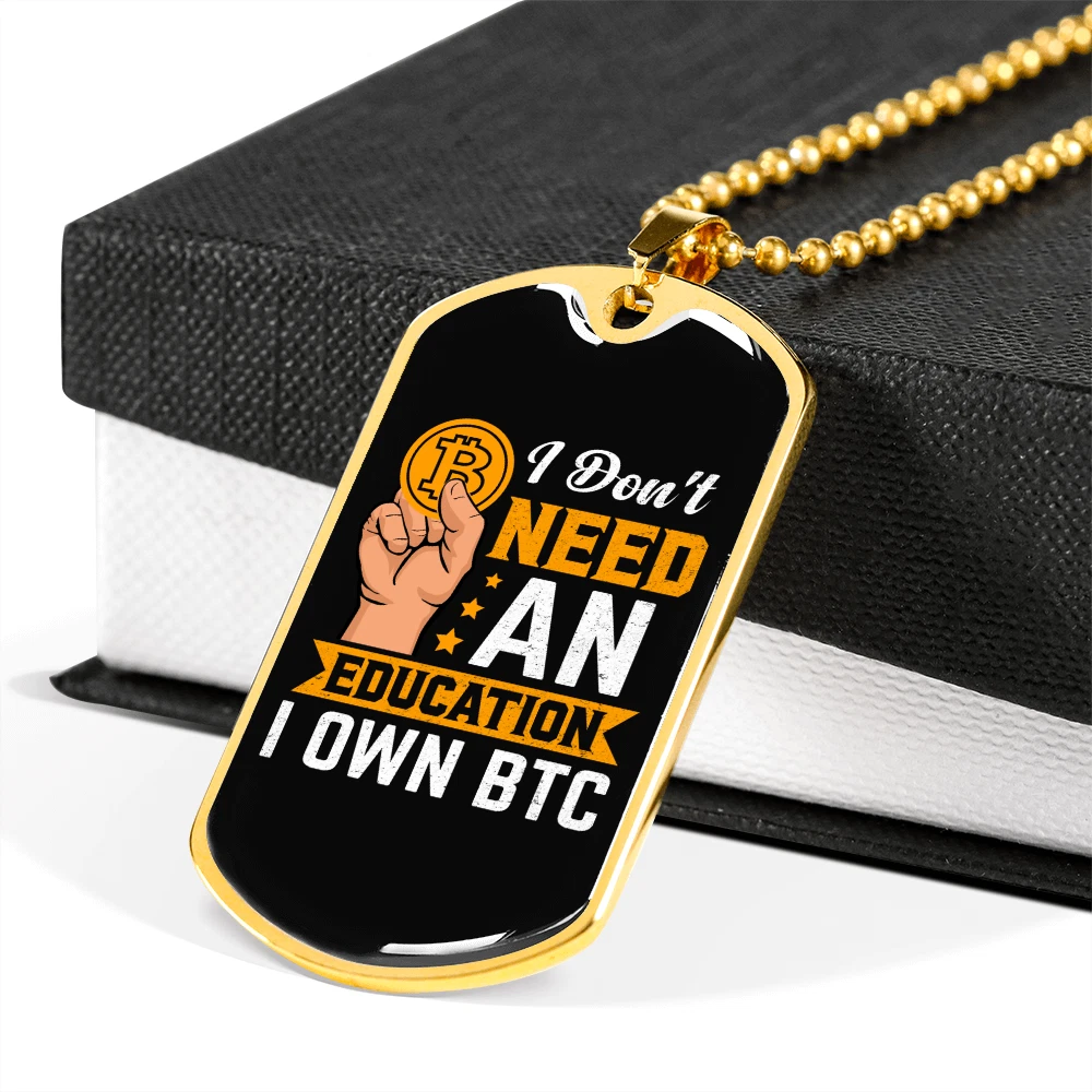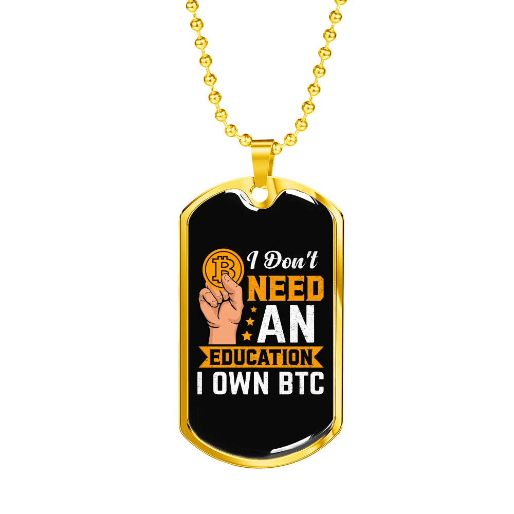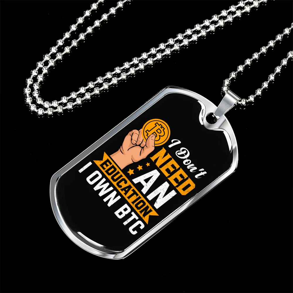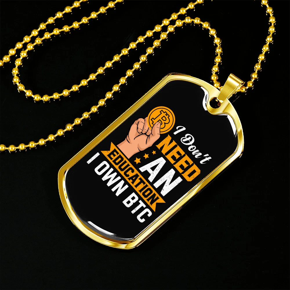 I Don't Need Education Crypto Necklace Stainless Steel or 18k Gold Dog Tag 24"