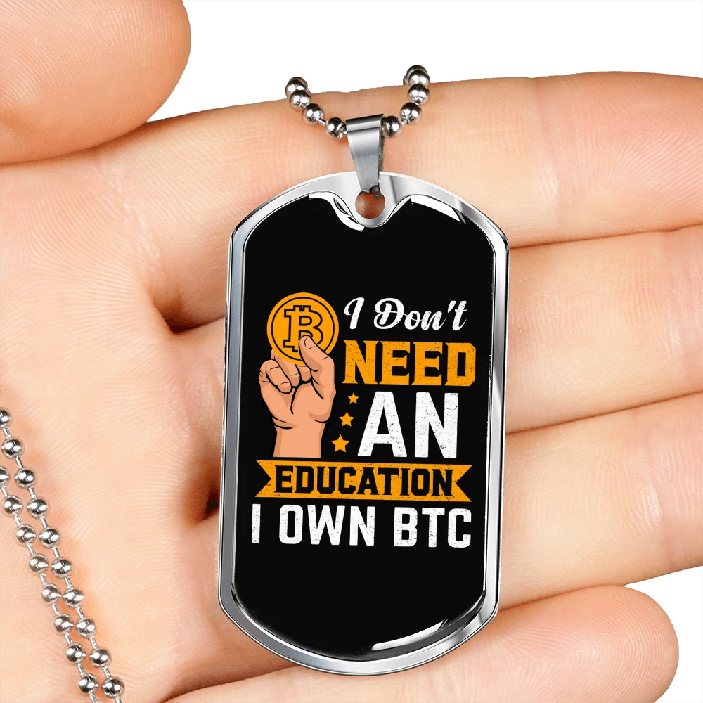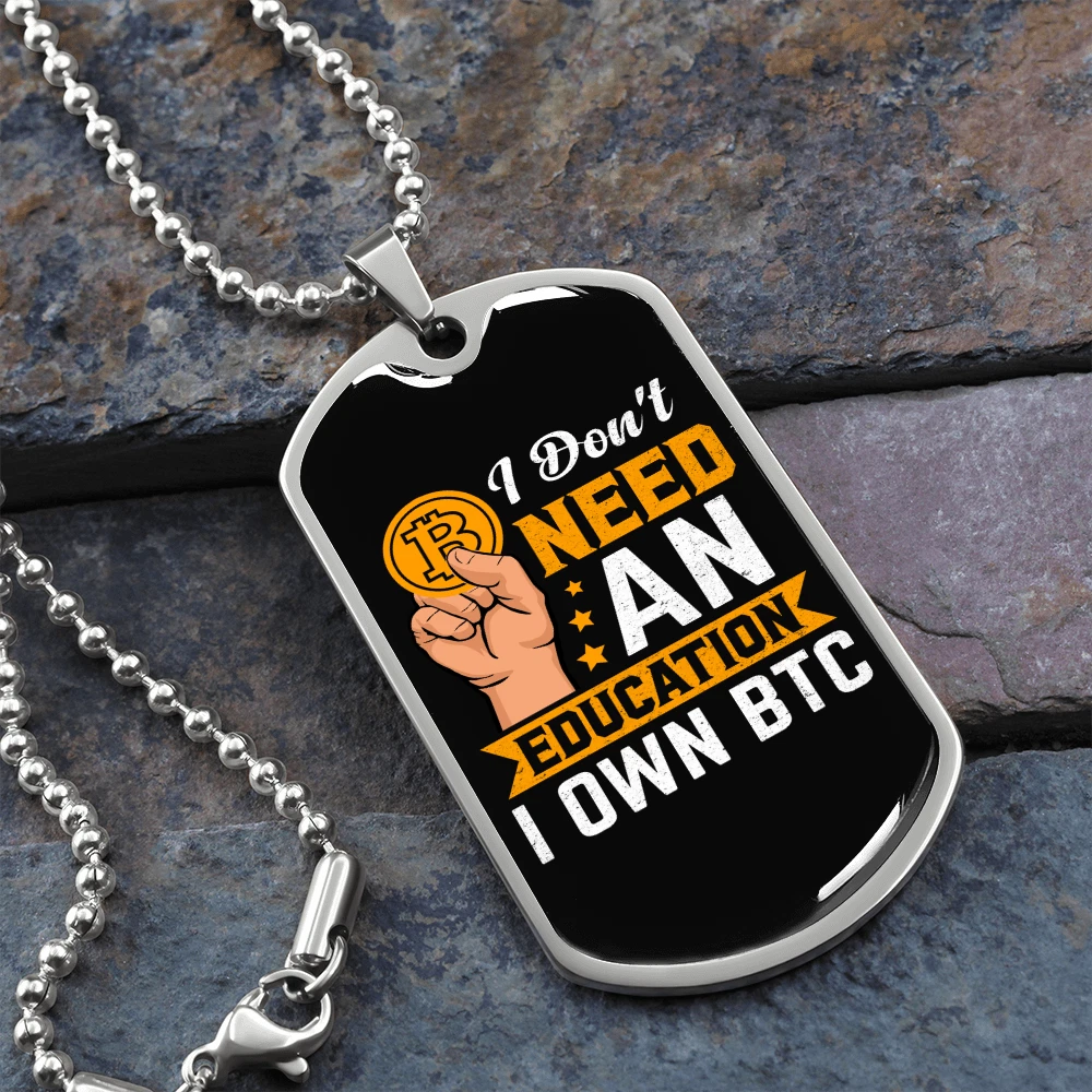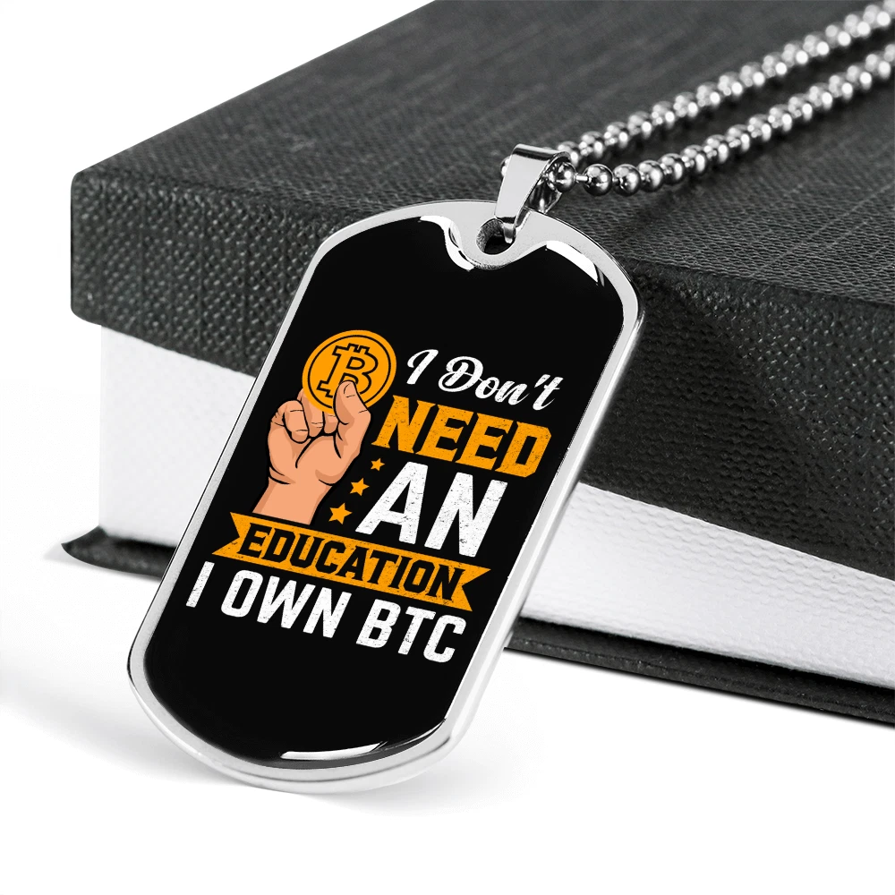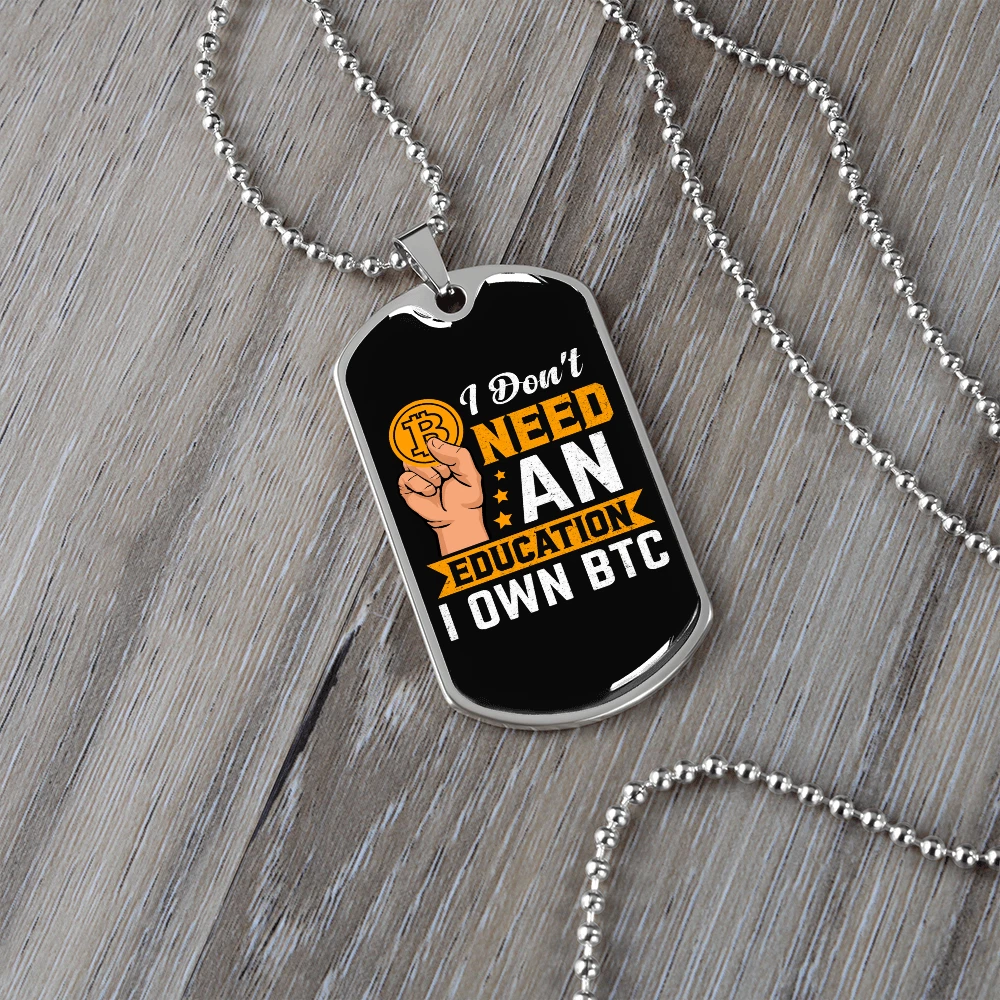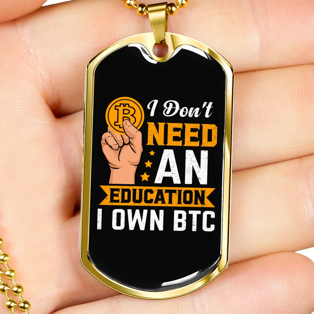 I Don't Need Education Crypto Necklace Stainless Steel or 18k Gold Dog Tag 24"
