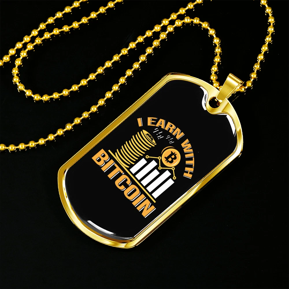 I Learn With Necklace Stainless Steel or 18k Gold Dog Tag 24" C