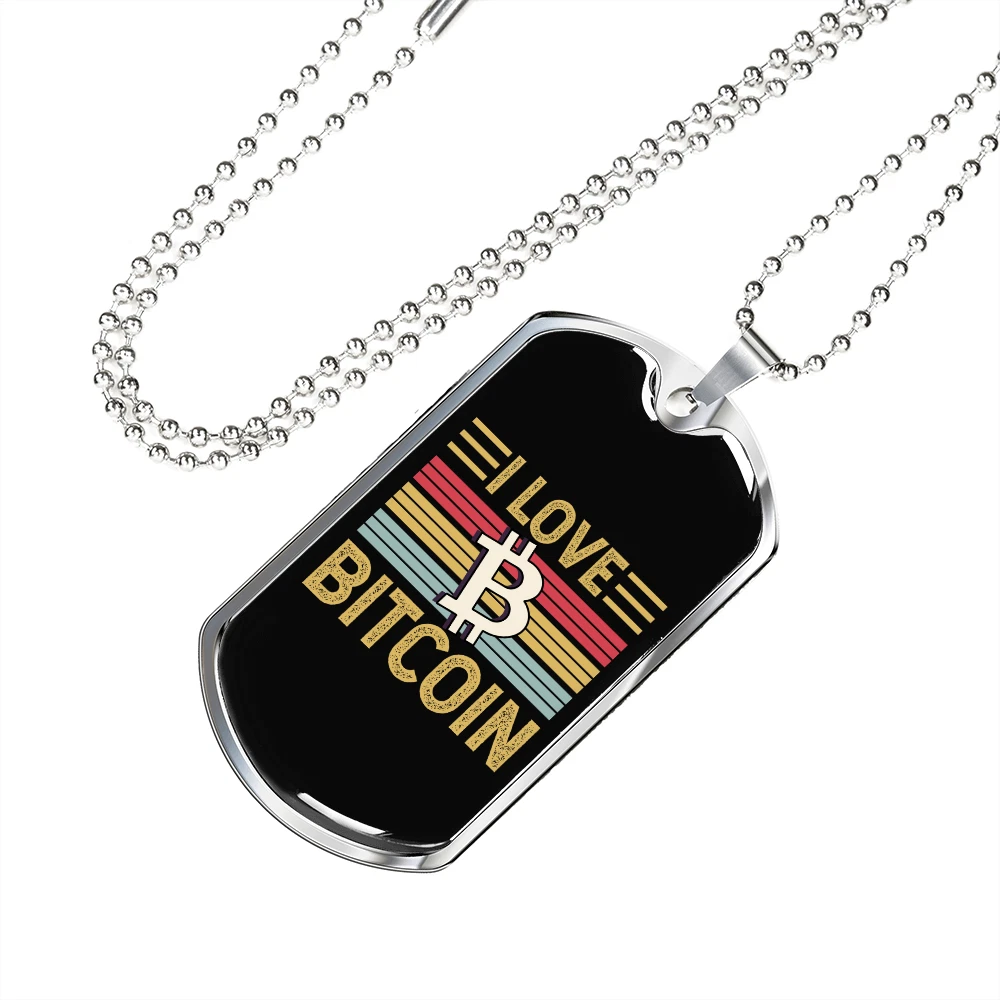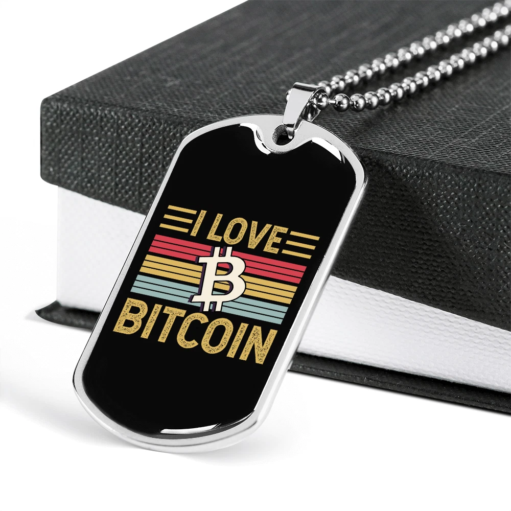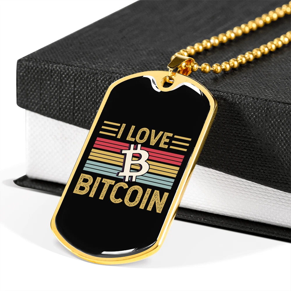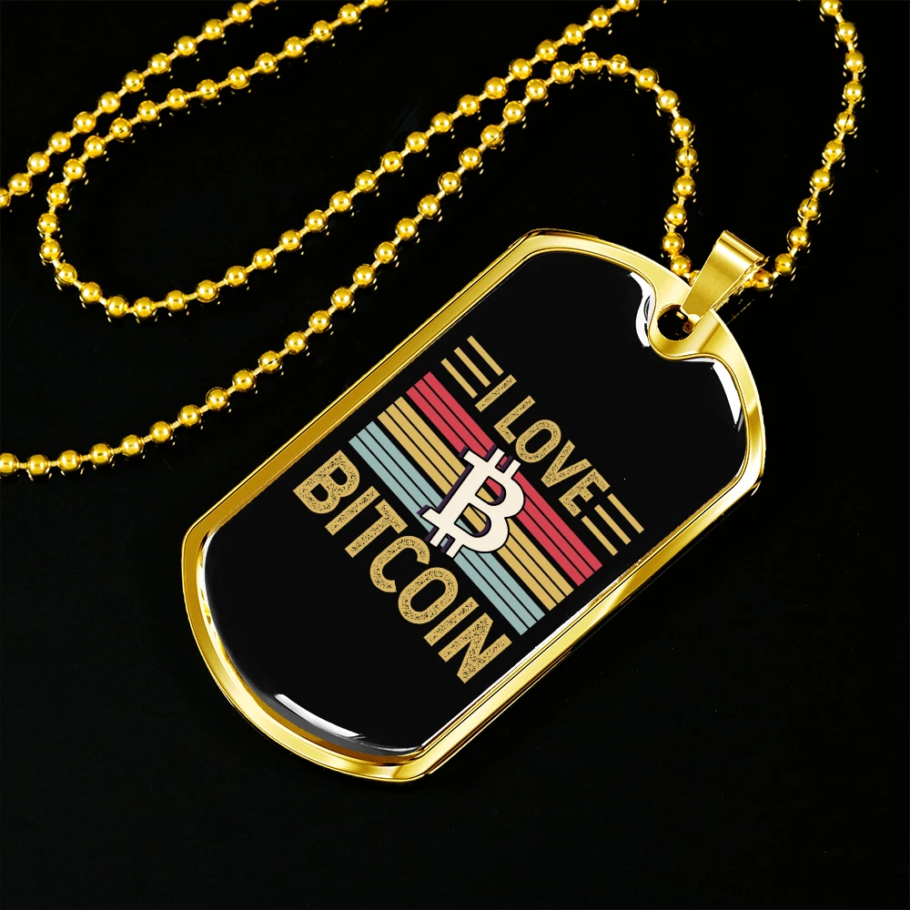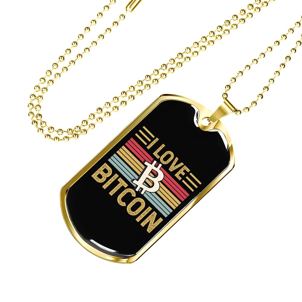 I Love Necklace Stainless Steel or 18k Gold Dog Tag 24" Chain