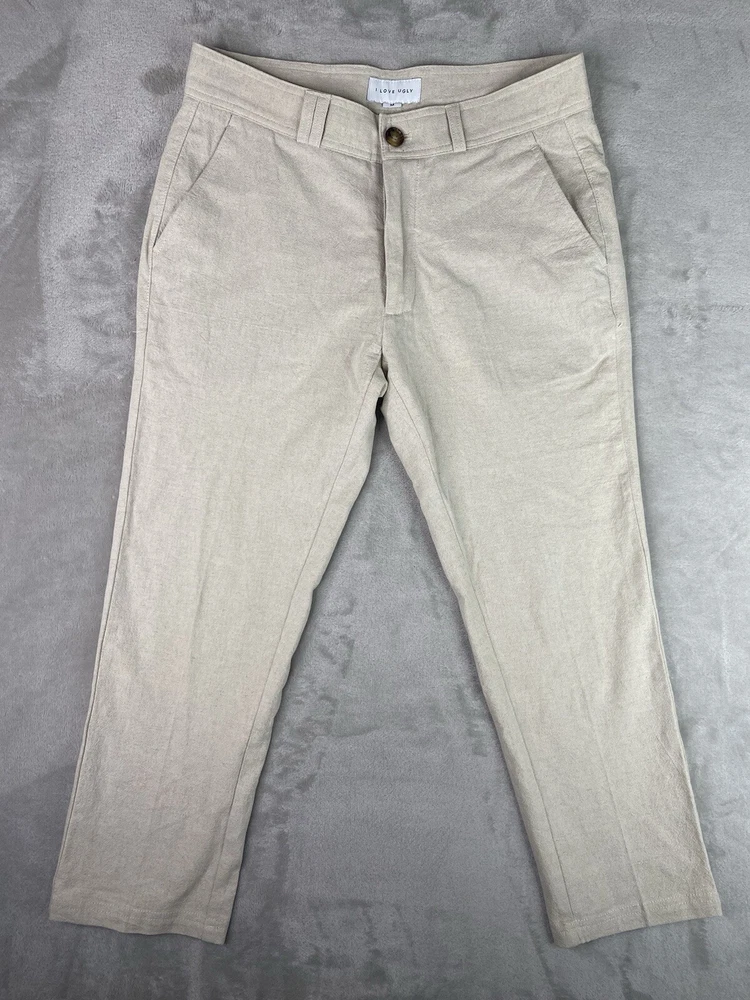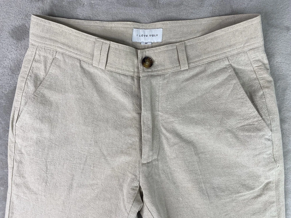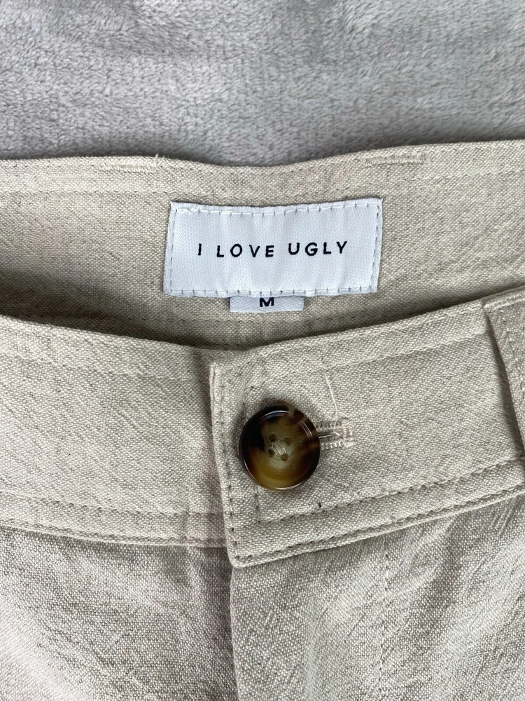 I Love Ugly ILU Ankle Pants Cotton/linen Blend Womens M Tan Color. Condition is Pre-owned. Shipped with USPS Ground Advantage.
